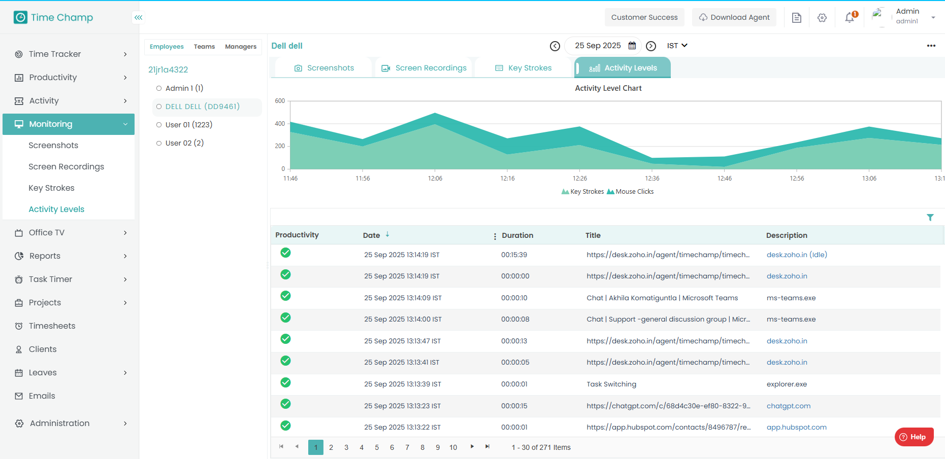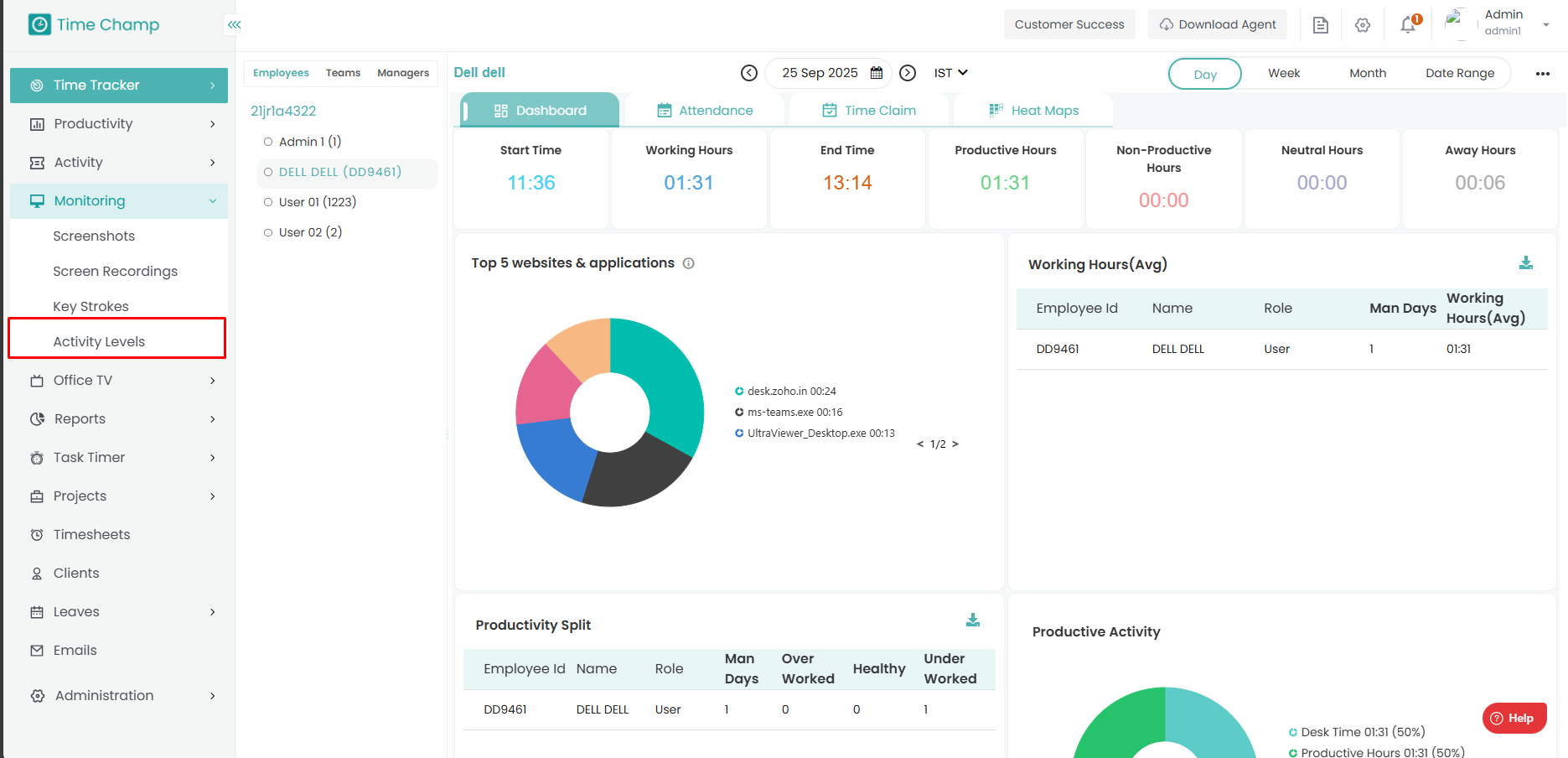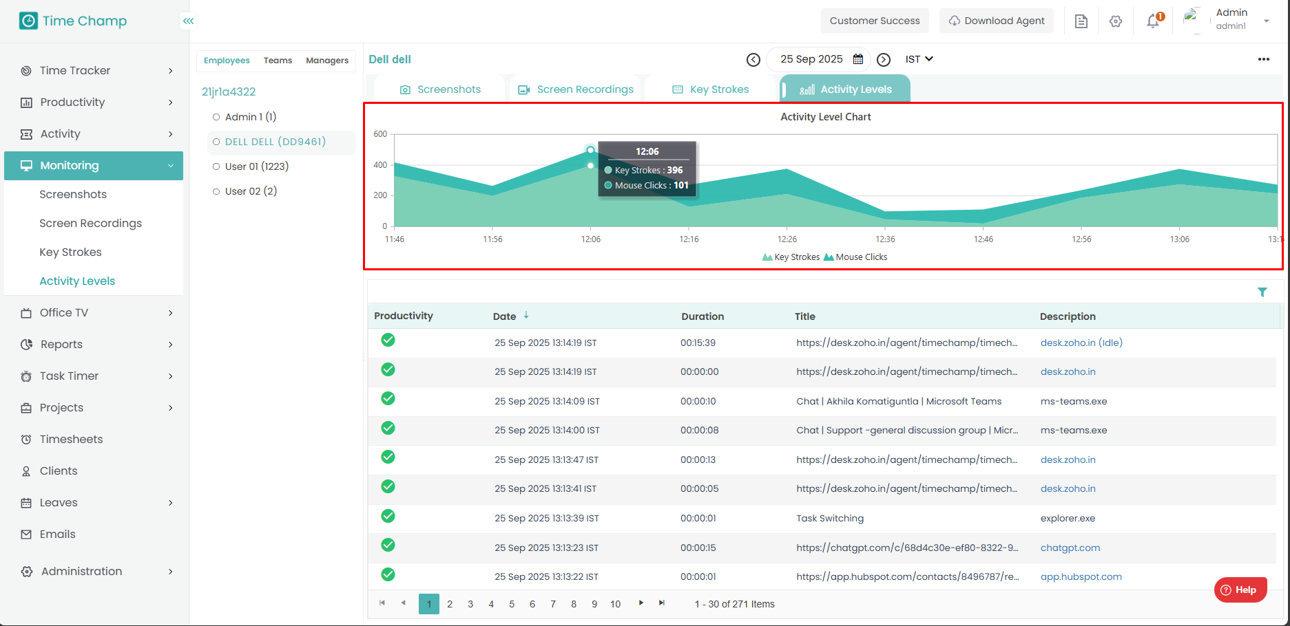 Step 5: At below, you can see the detailed activity of the employee along with time.