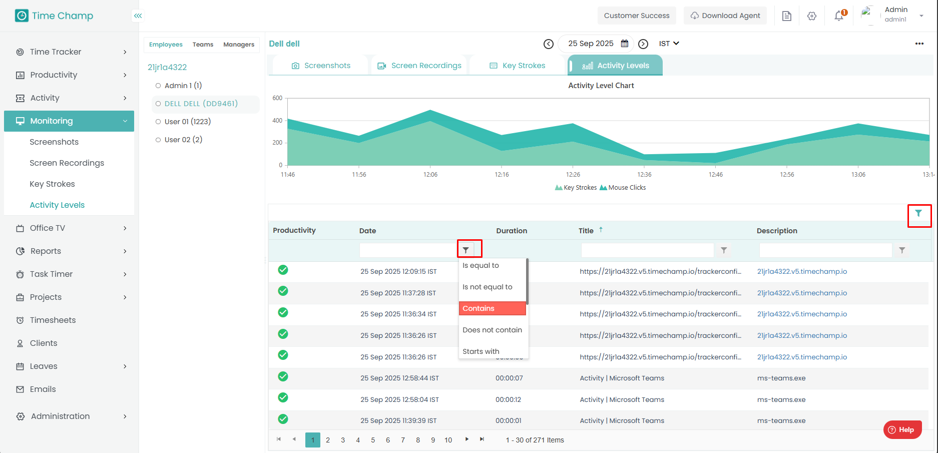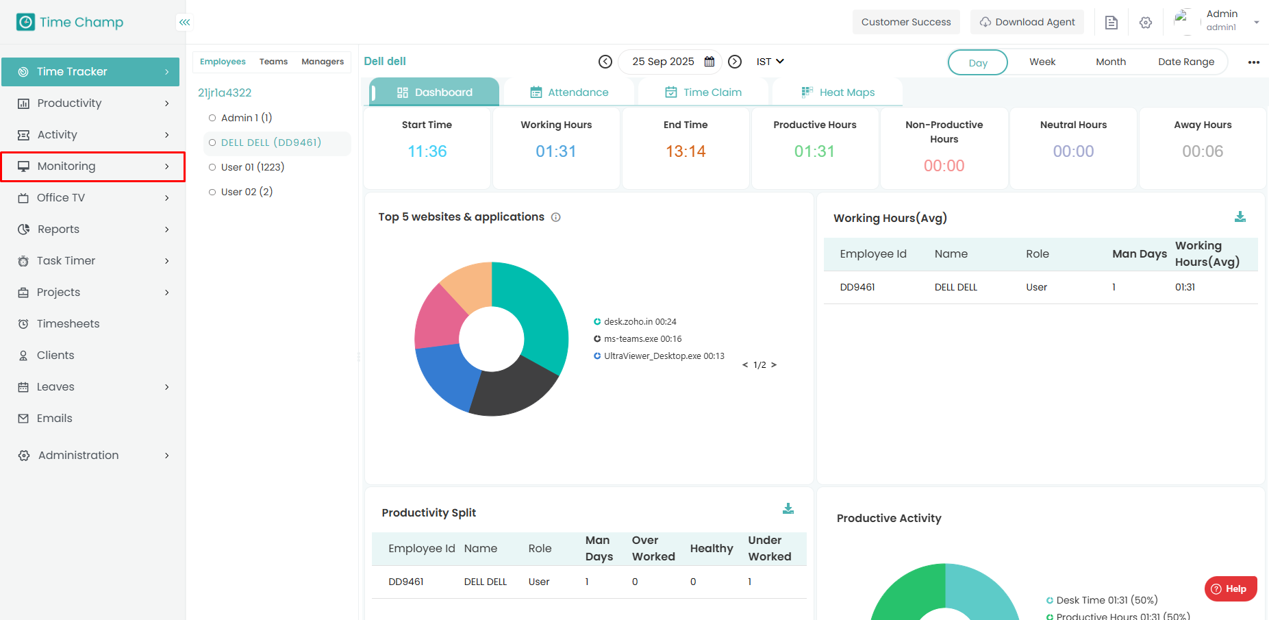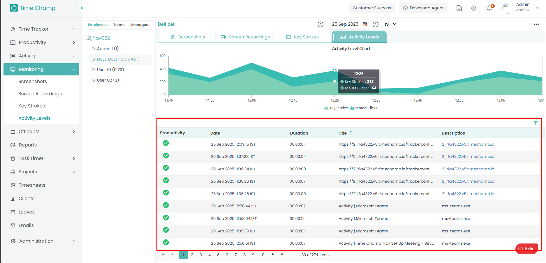 Step 5: At below, you can see the detailed activity of the employee along with time.