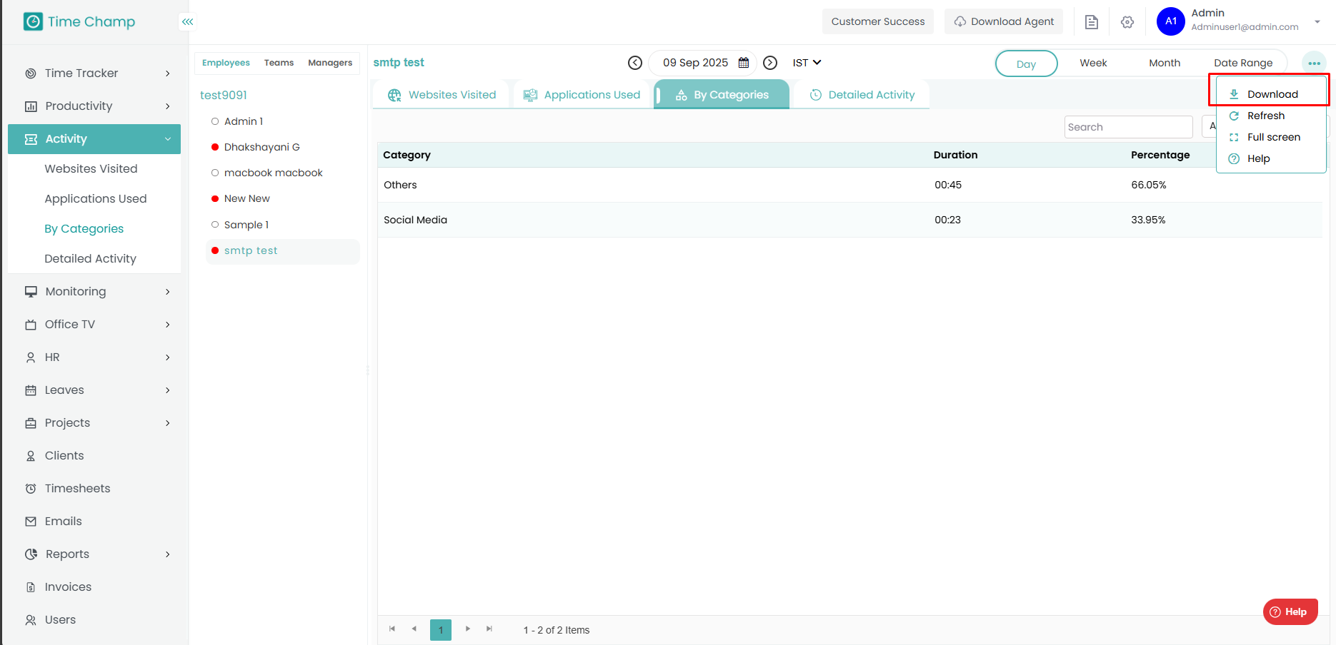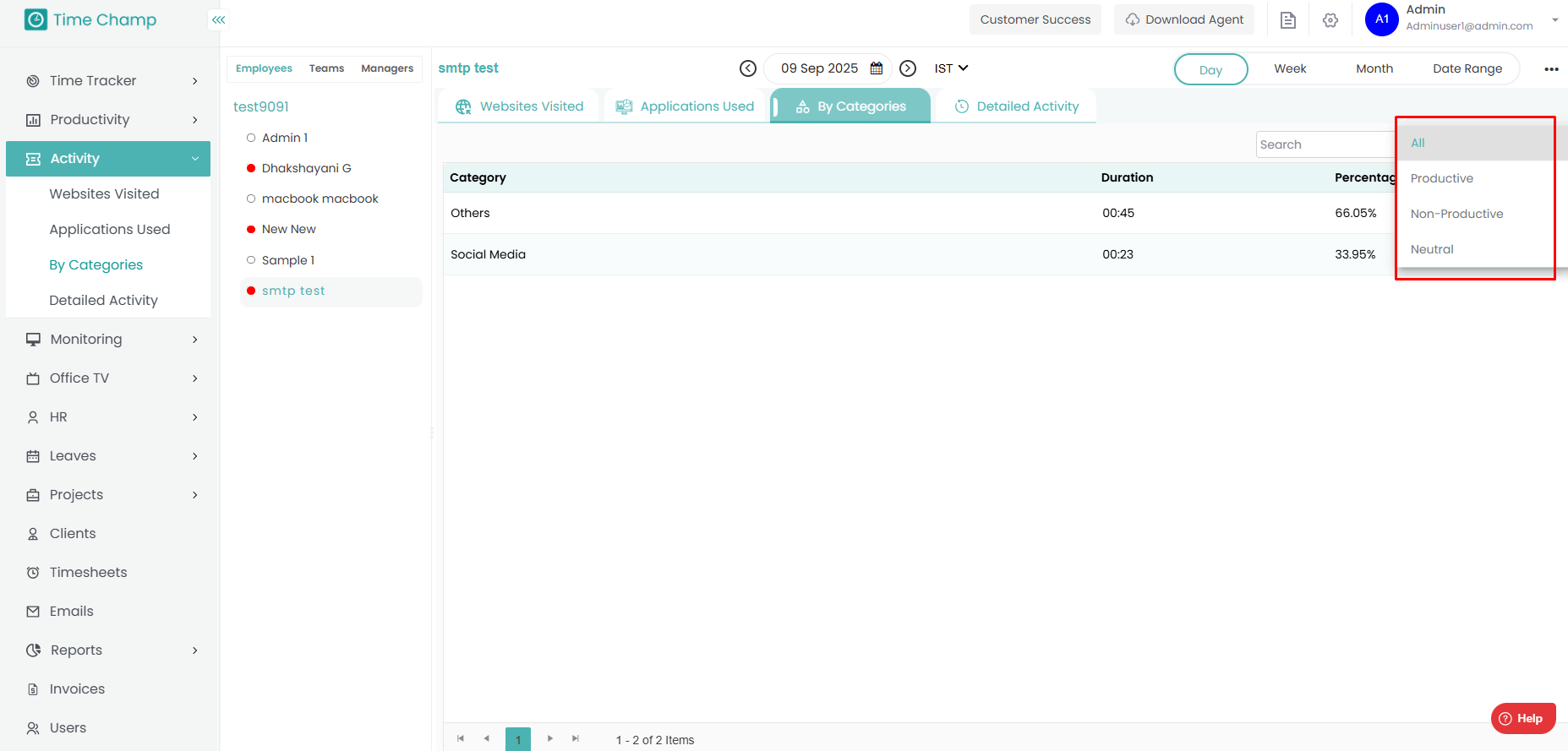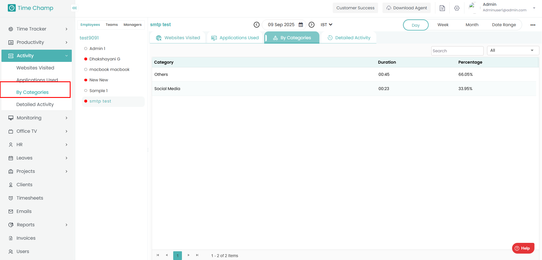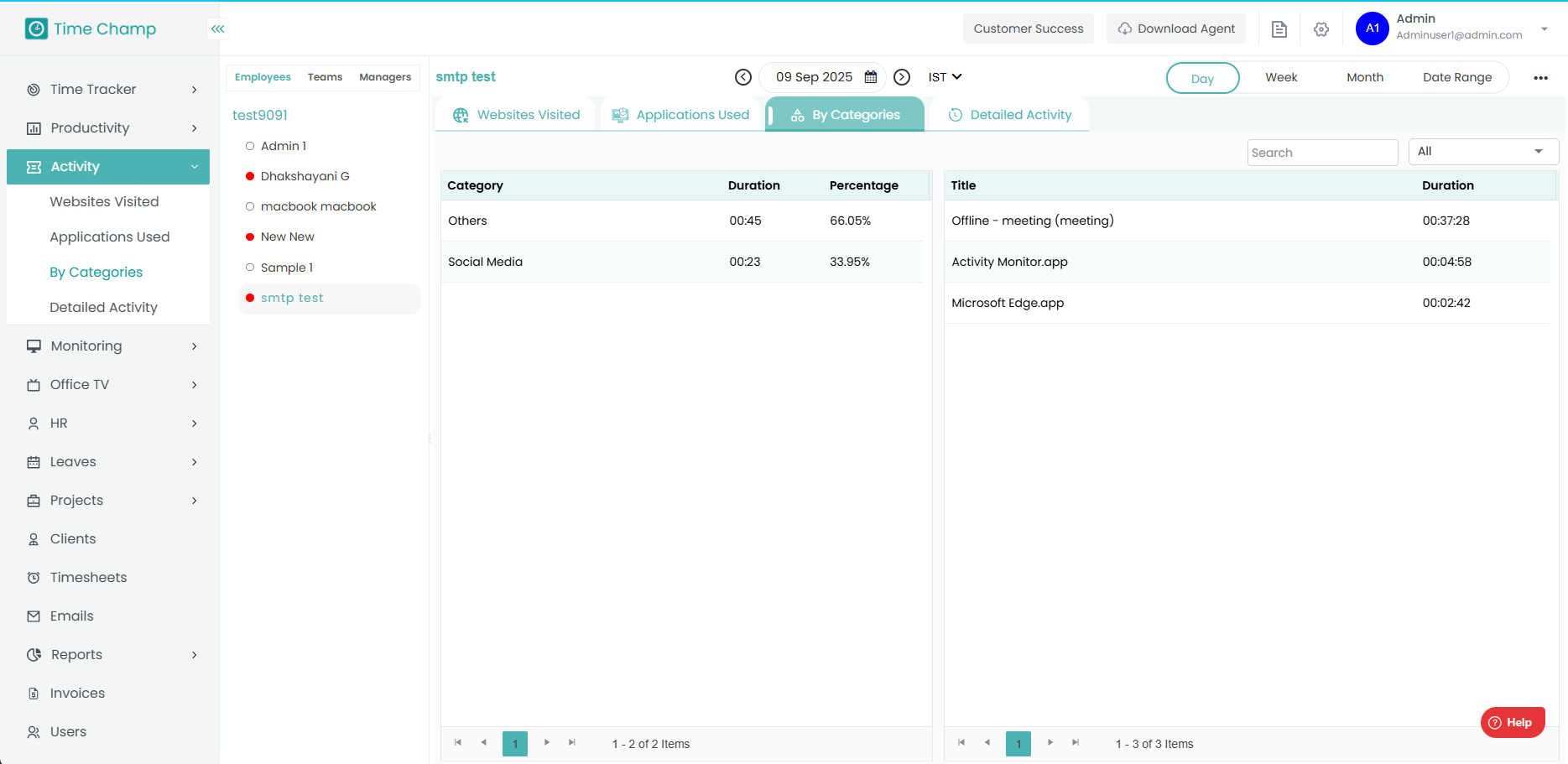 By clicking on a specific category, you can view the applications and websites visited by the user under that category.