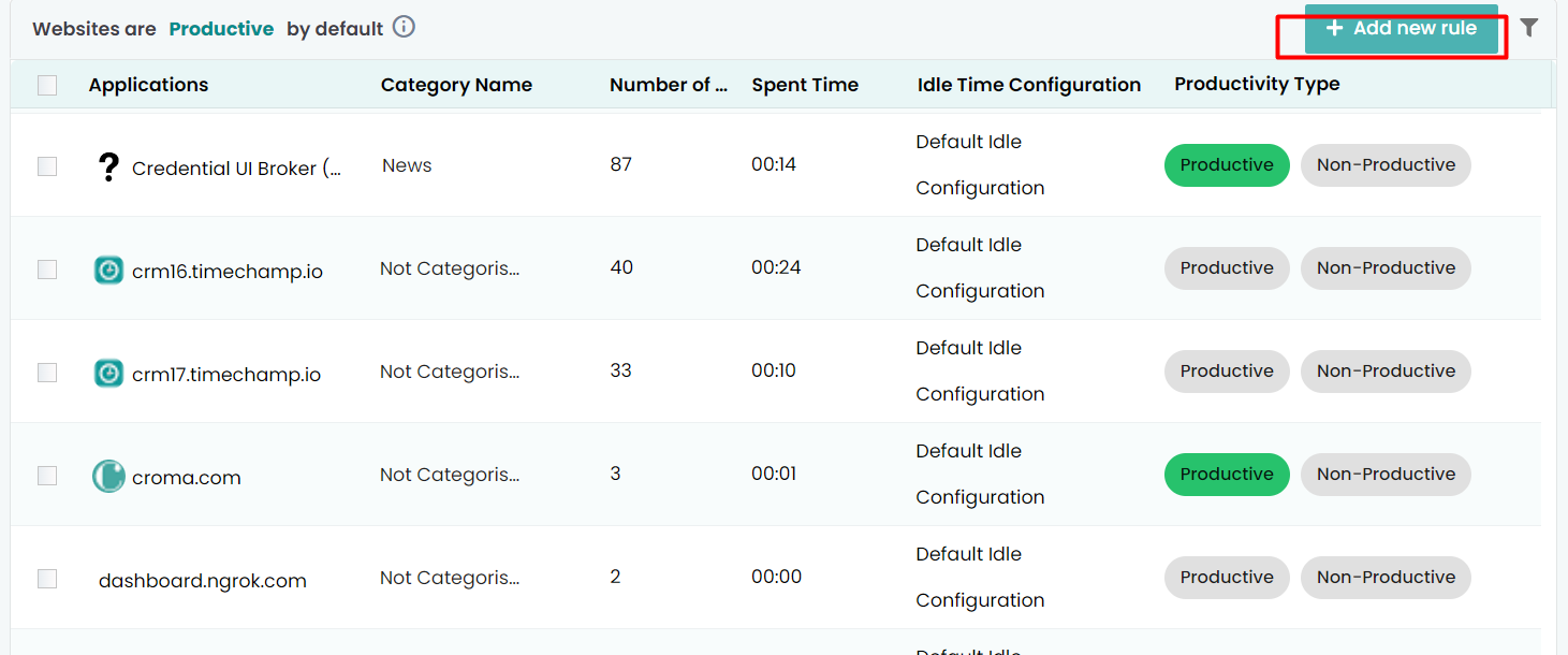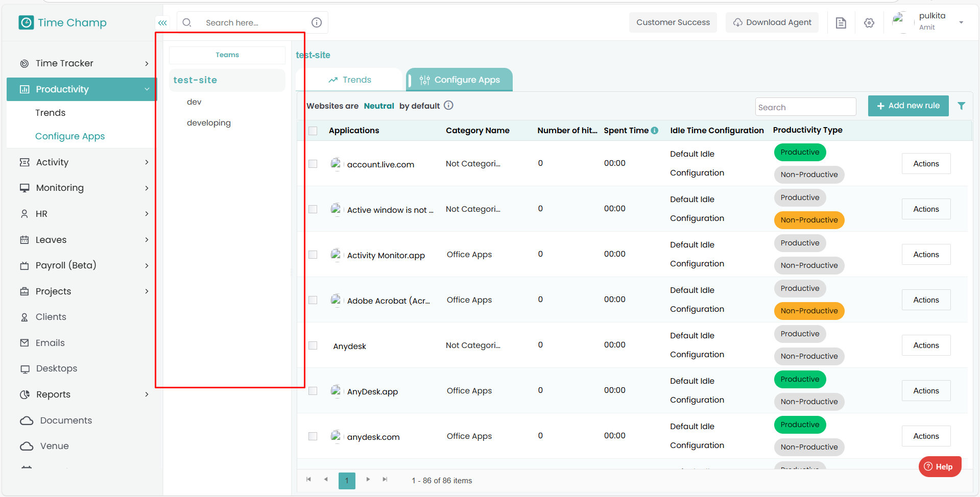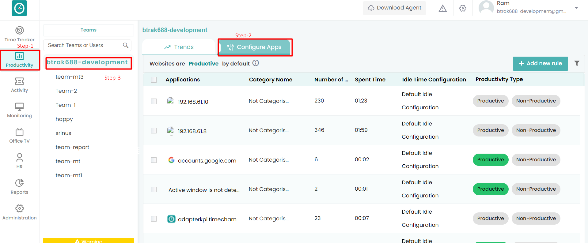 Follow the steps below to navigate and configure applications under the Configure Apps section in the Productivity module of Time Champ: