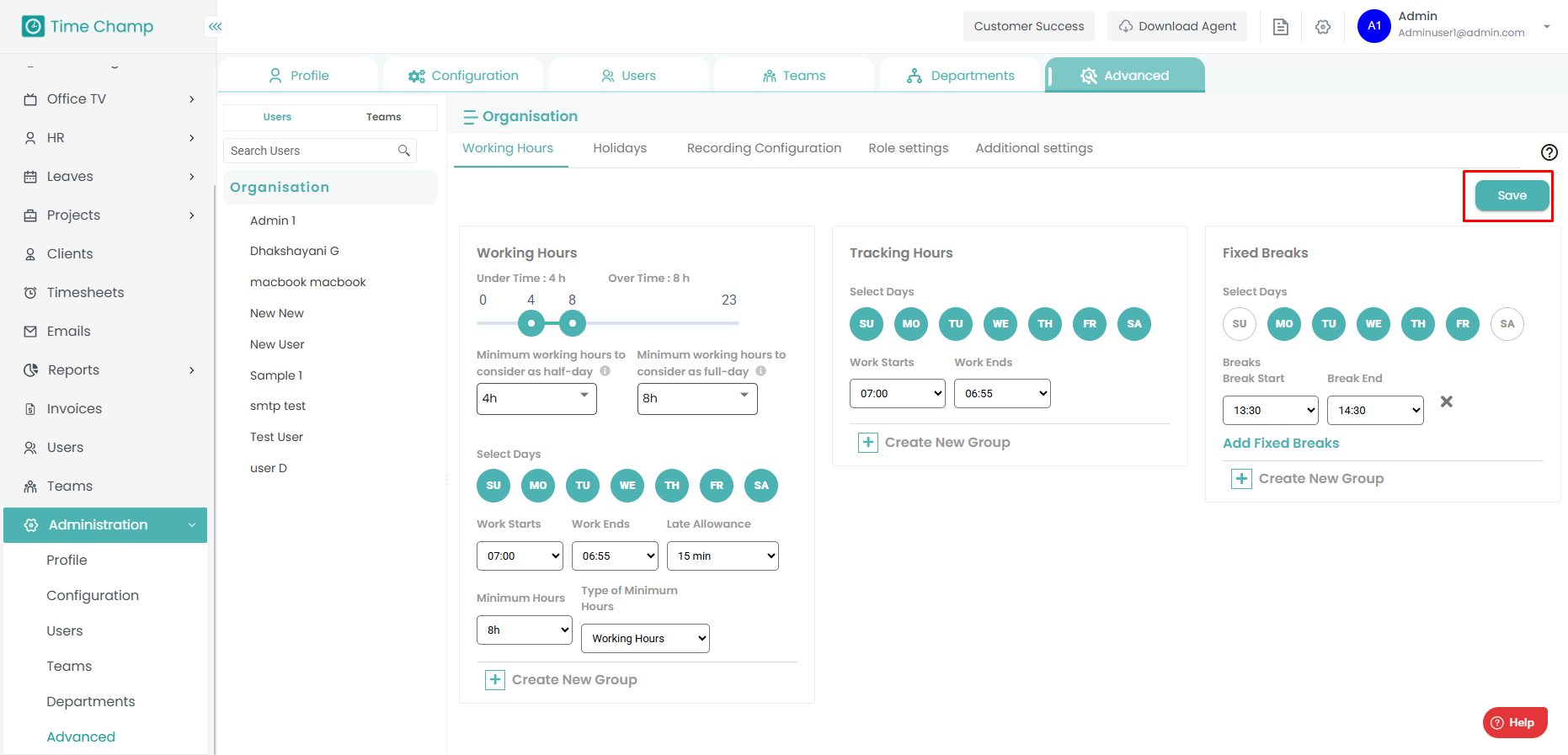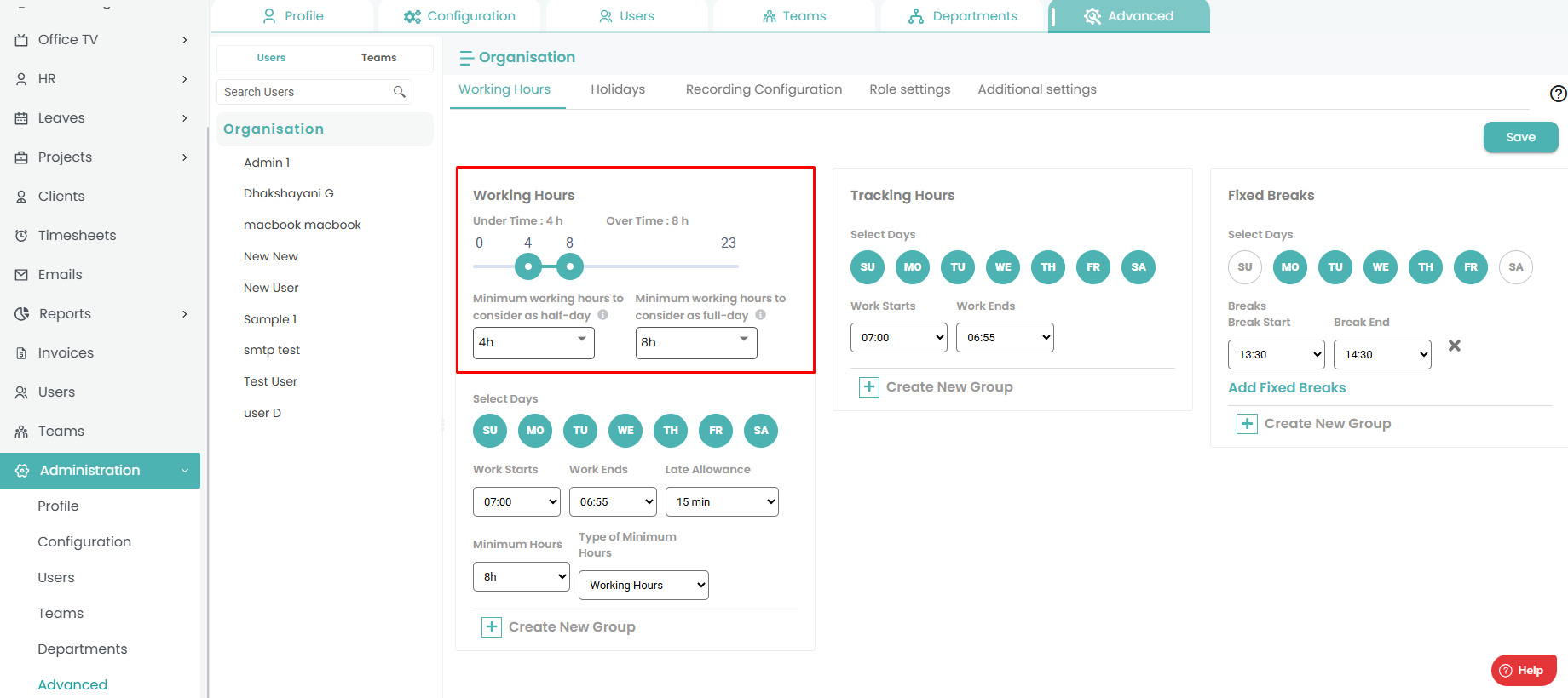 Minimum working hours to consider as half-day: The minimum number of hours an employee must work in a day on the system to mark it as a half-day instead of absent.