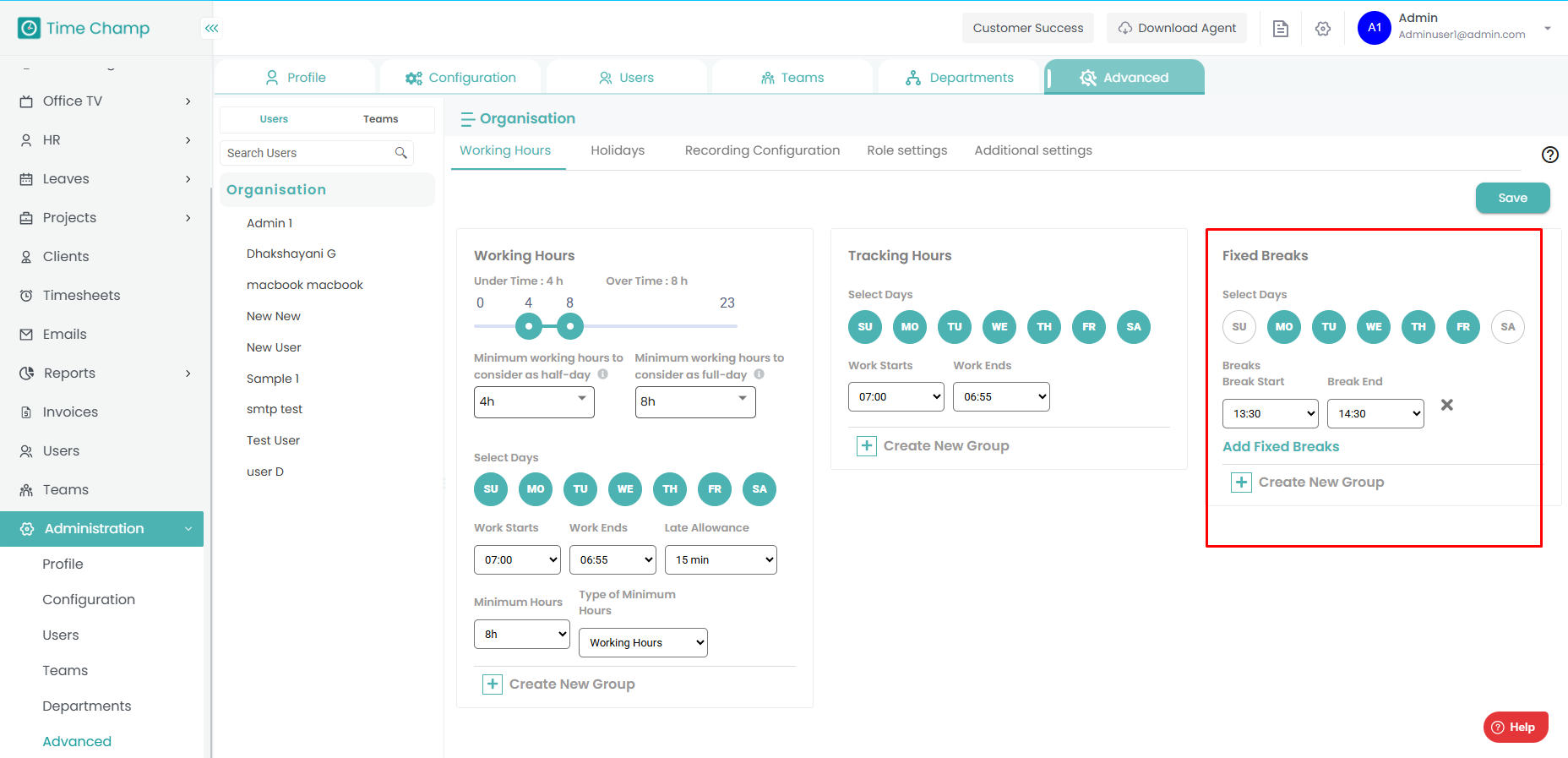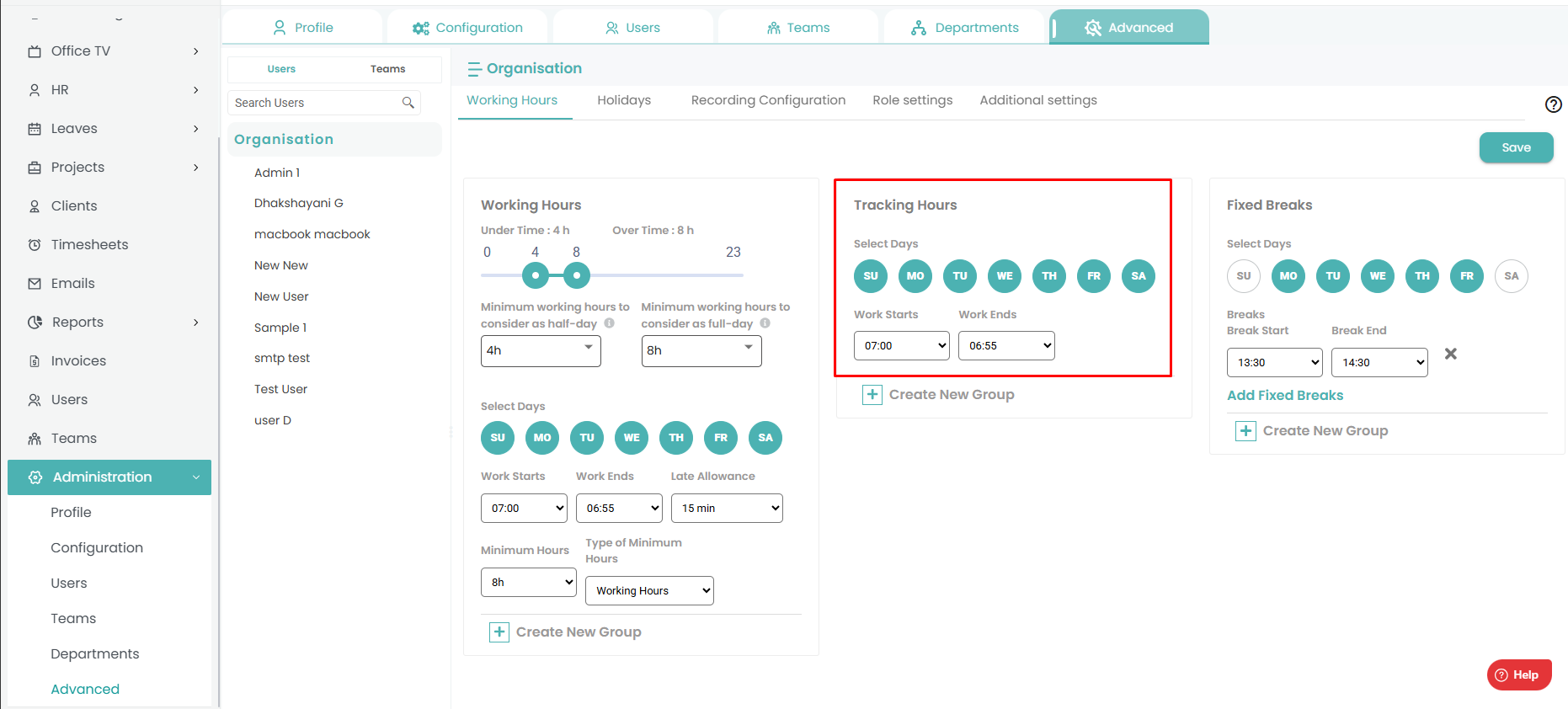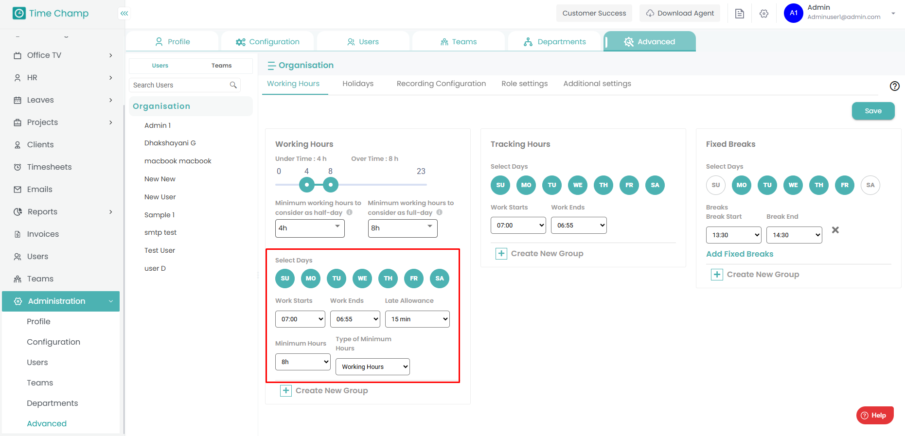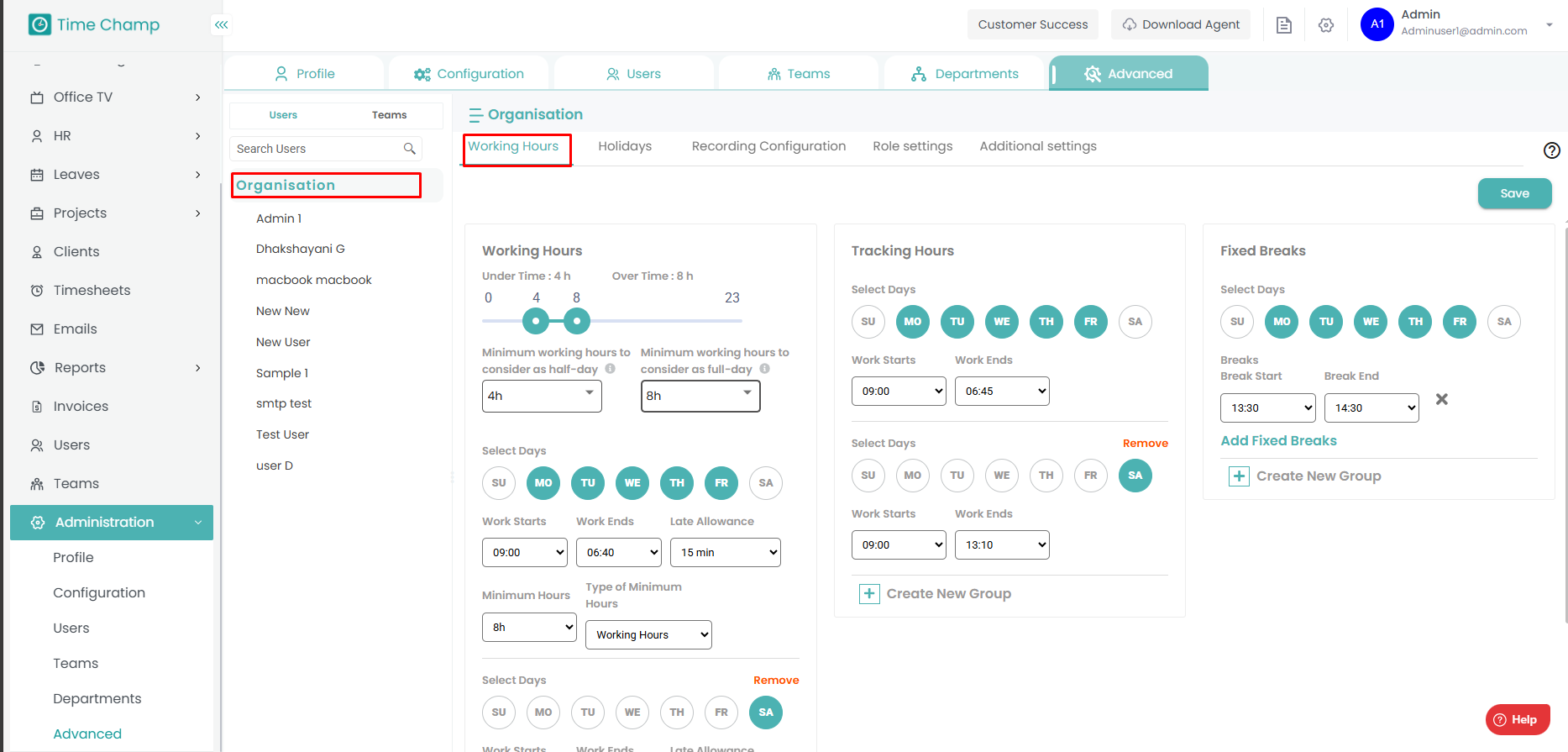 You can set target working hours for employees and assign different working hours for different days of the week.