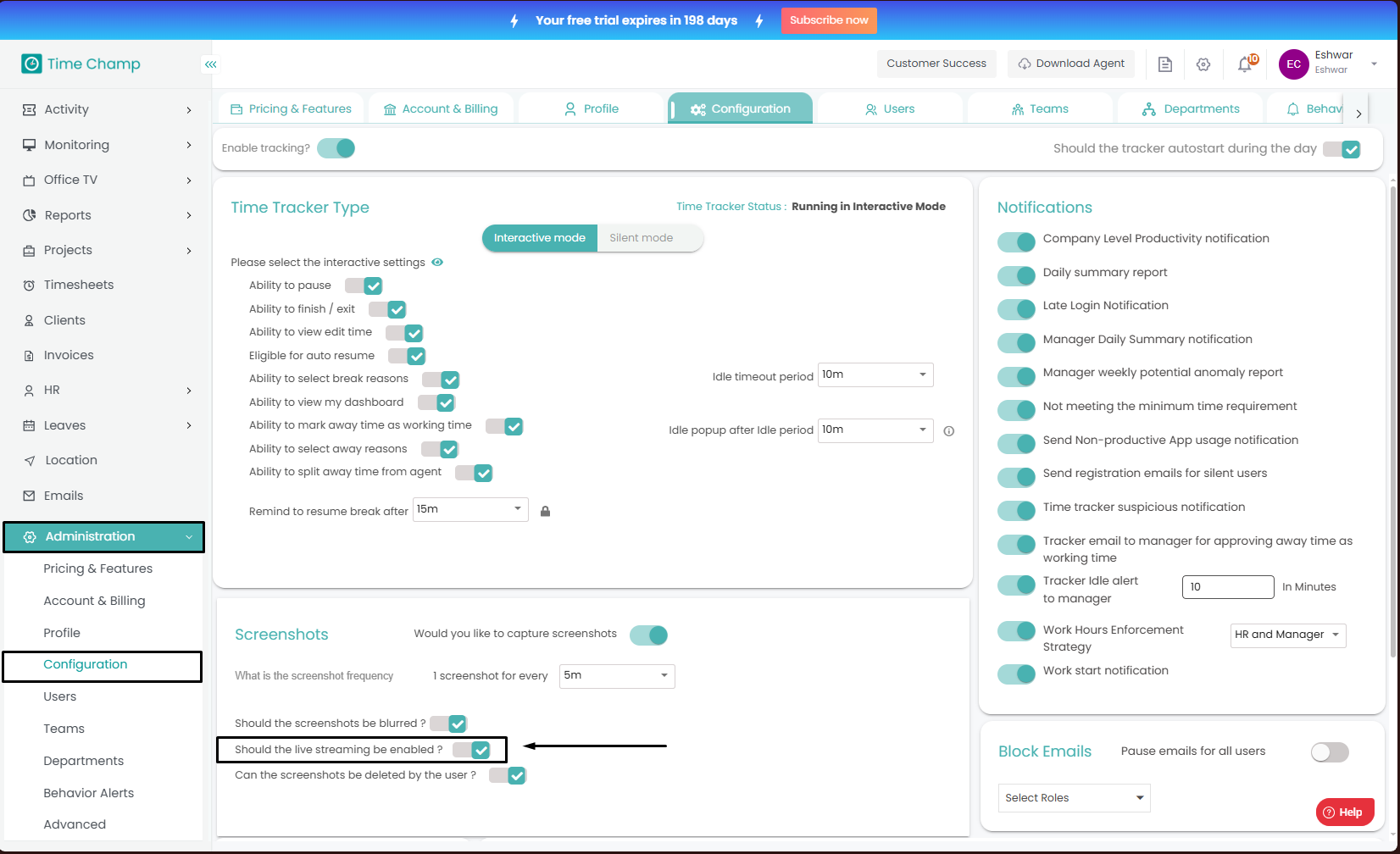 Follow the steps to enable/disable keystrokes and mouse clicks tracking. Step 1: Log into the site utilizing your credentials. Step 2: Navigate to the Administration Module and then to the Configuration section. Step 3: Now you can toggle the ...