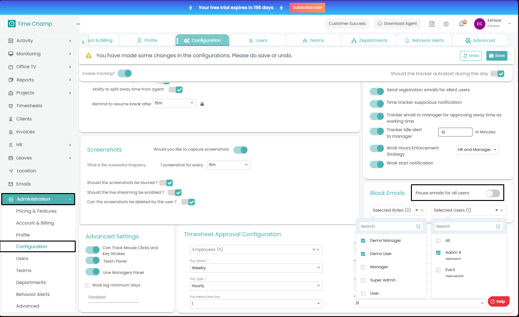 This feature can also be applied to specific roles. Within a chosen role, you can decide whether to pause emails for all employees or only for selected individuals, giving you flexibility in managing email delivery.