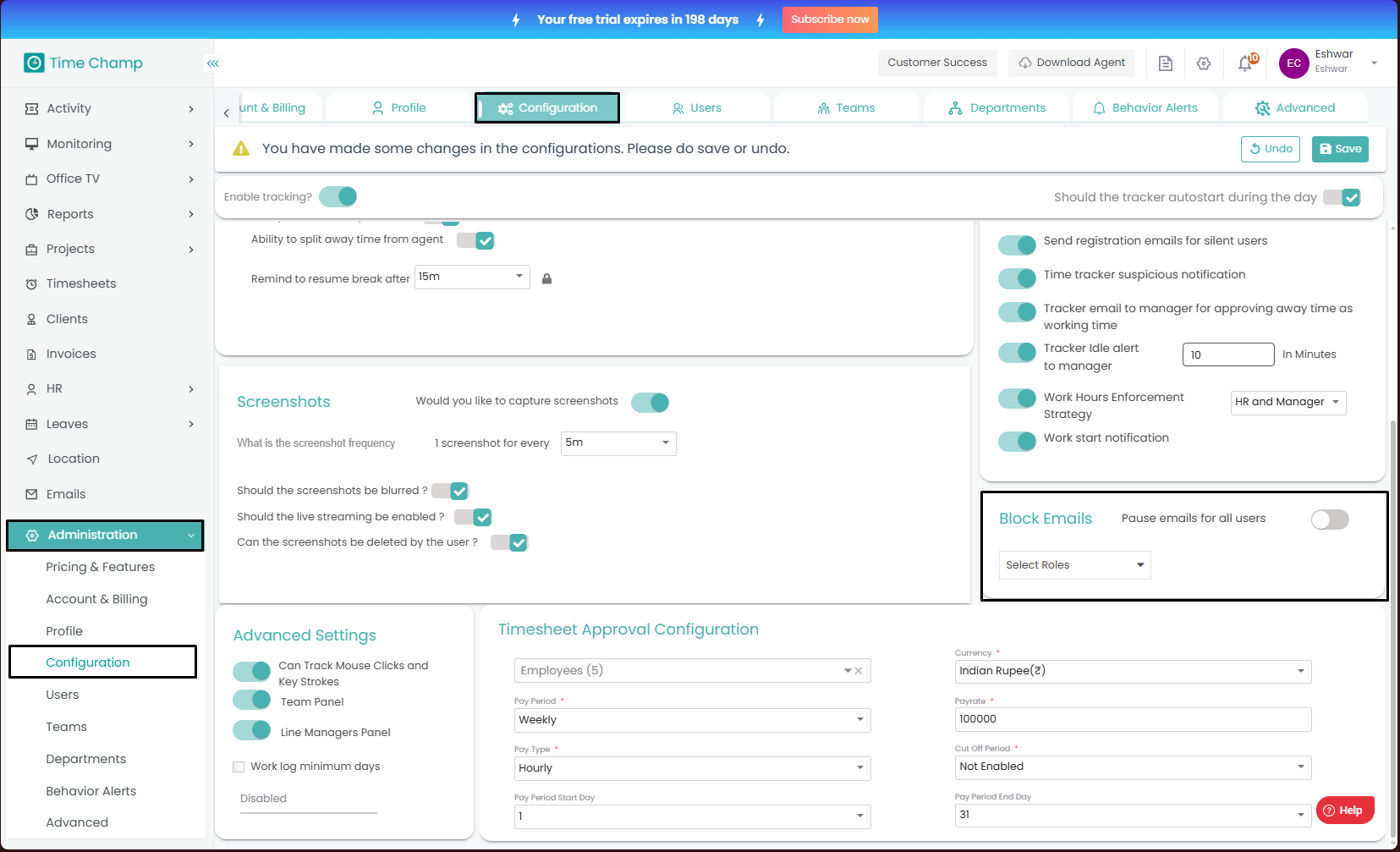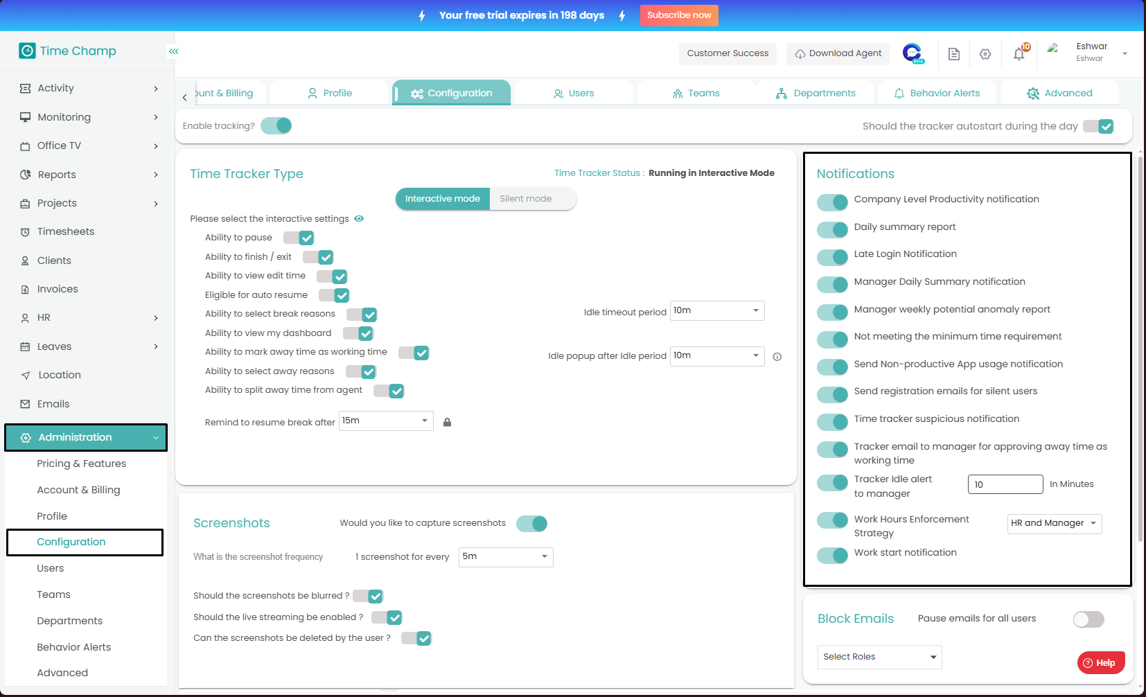 Follow the steps to enable/disable keystrokes and mouse clicks tracking. Step 1: Log into the site utilizing your credentials. Step 2: Navigate to the Administration Module and then to the Configuration section. Step 3: Now you can toggle the ...