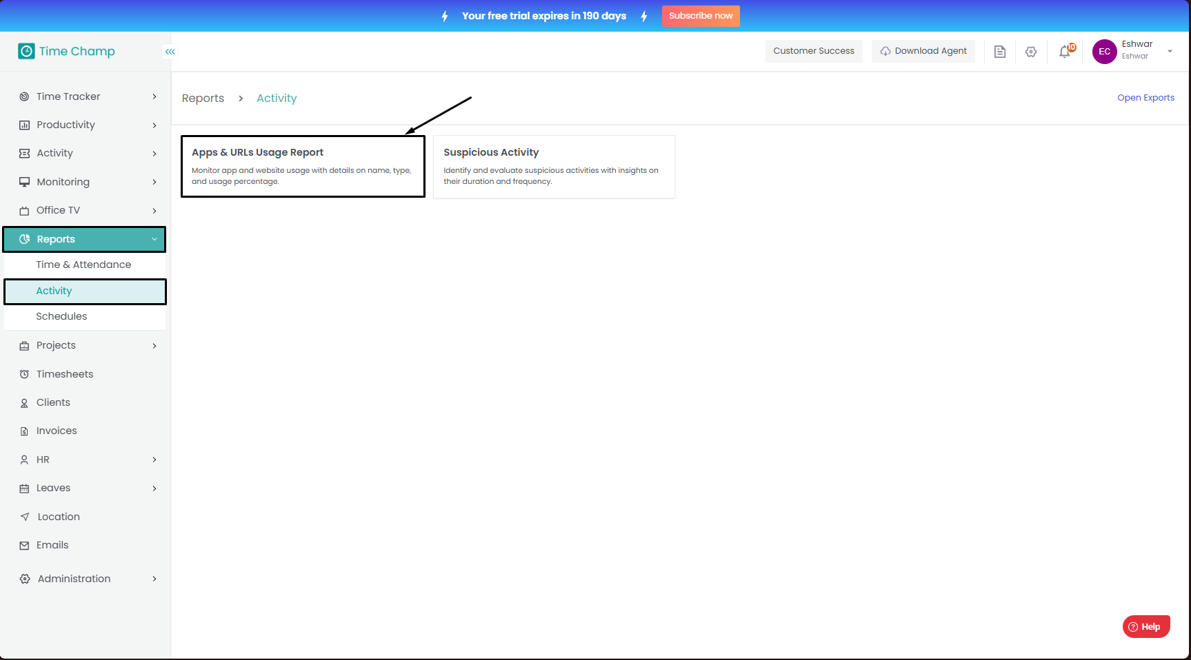 How to access and download Apps and URLs Usage Report?