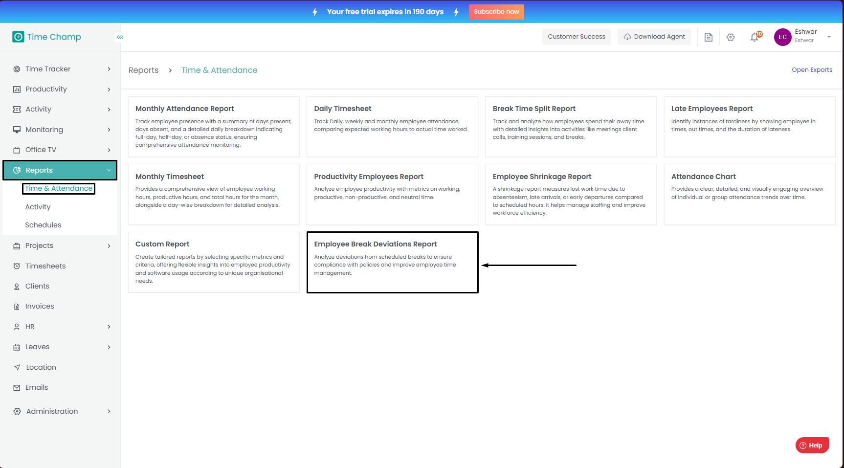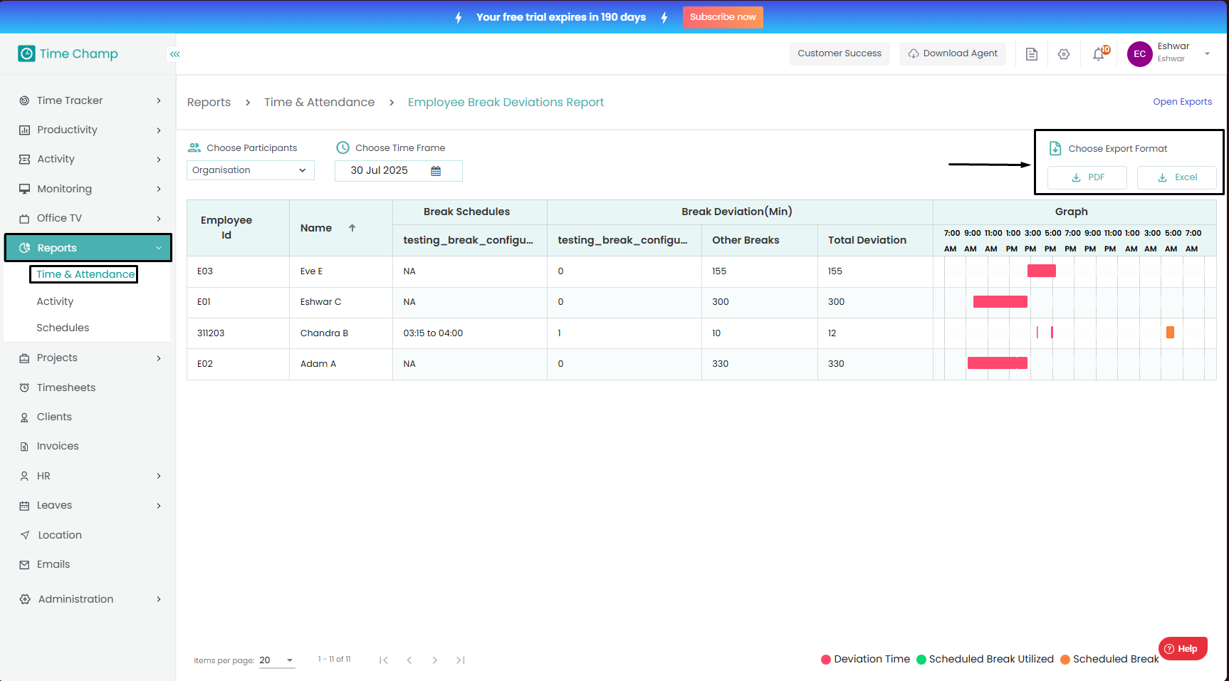 Follow the steps to access and download the Employee Break Deviations Reports.