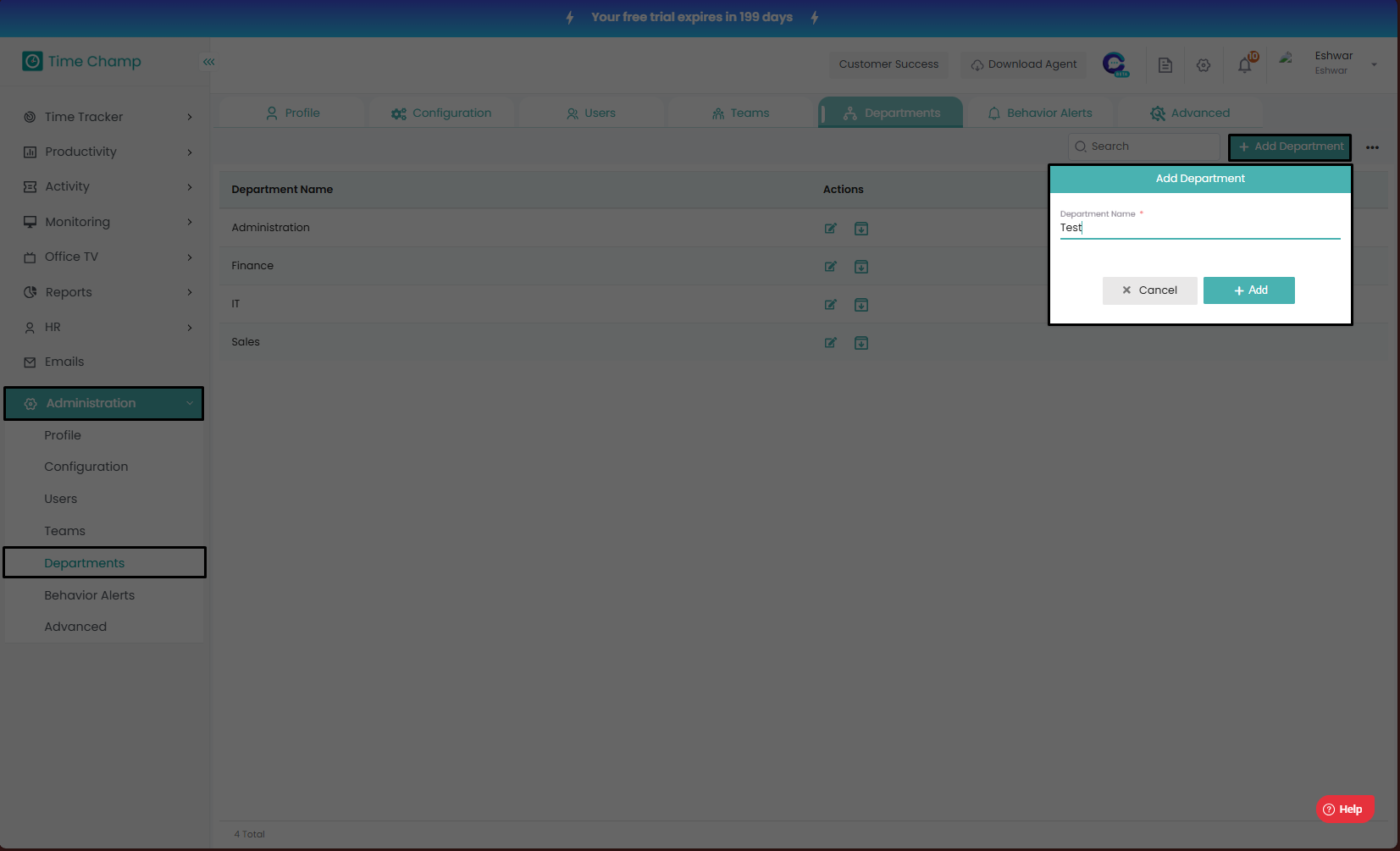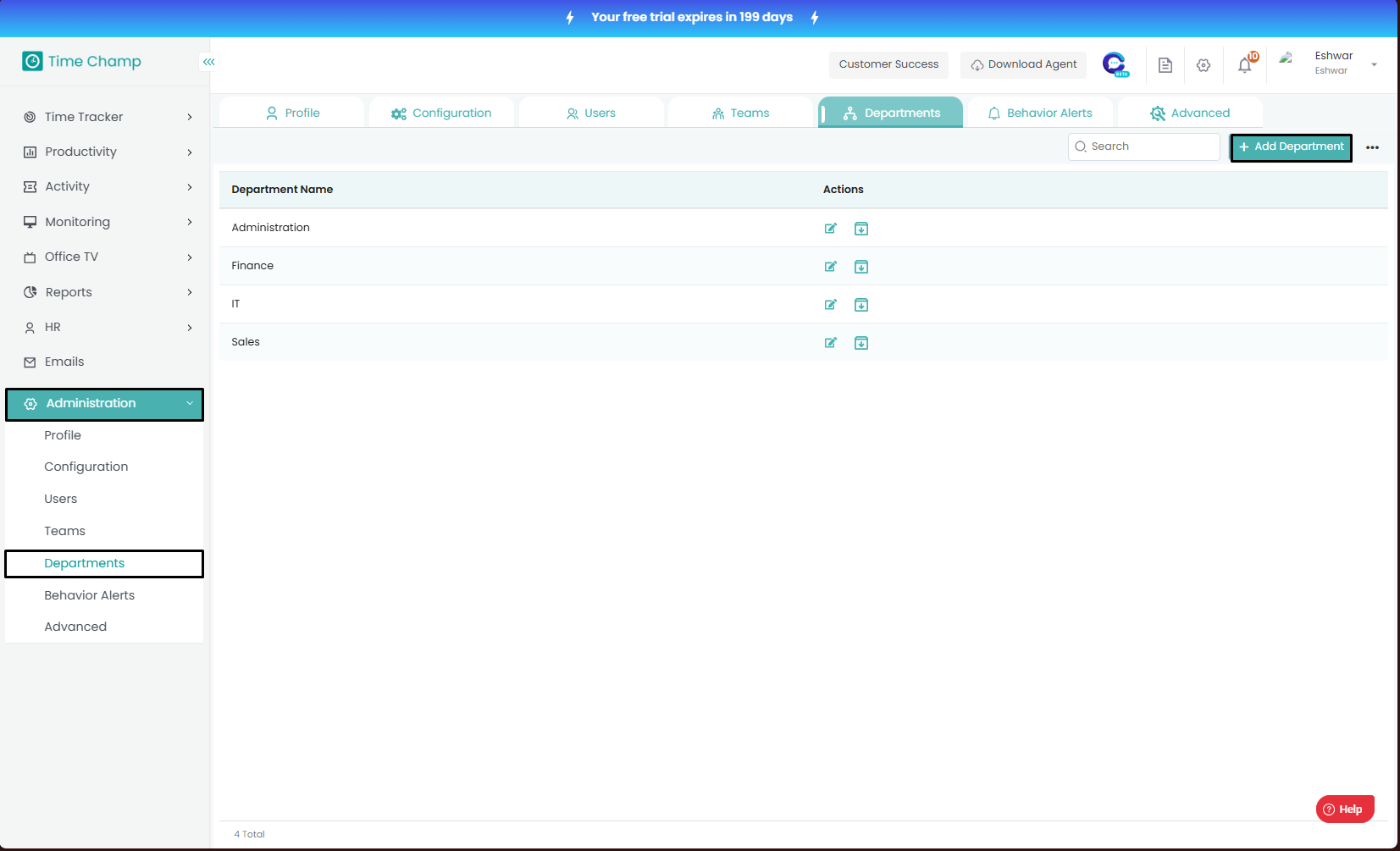 Follow the steps to edit a department. Step 1: Log into the site utilizing your credentials. Step 2: Navigate to the Administration Module and then to the Departments section. Step 3: Now you can view the edit department option in the highlighted ...
