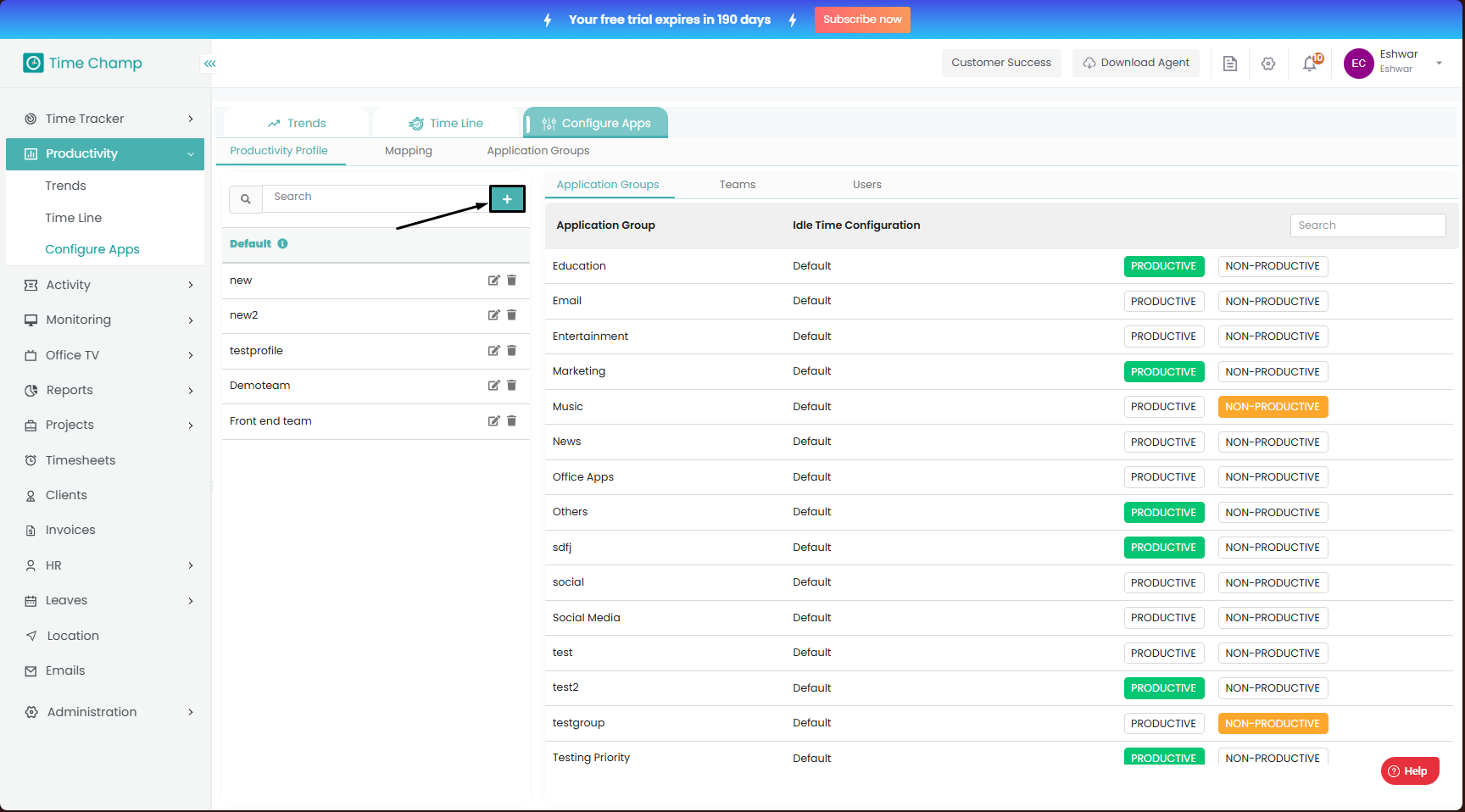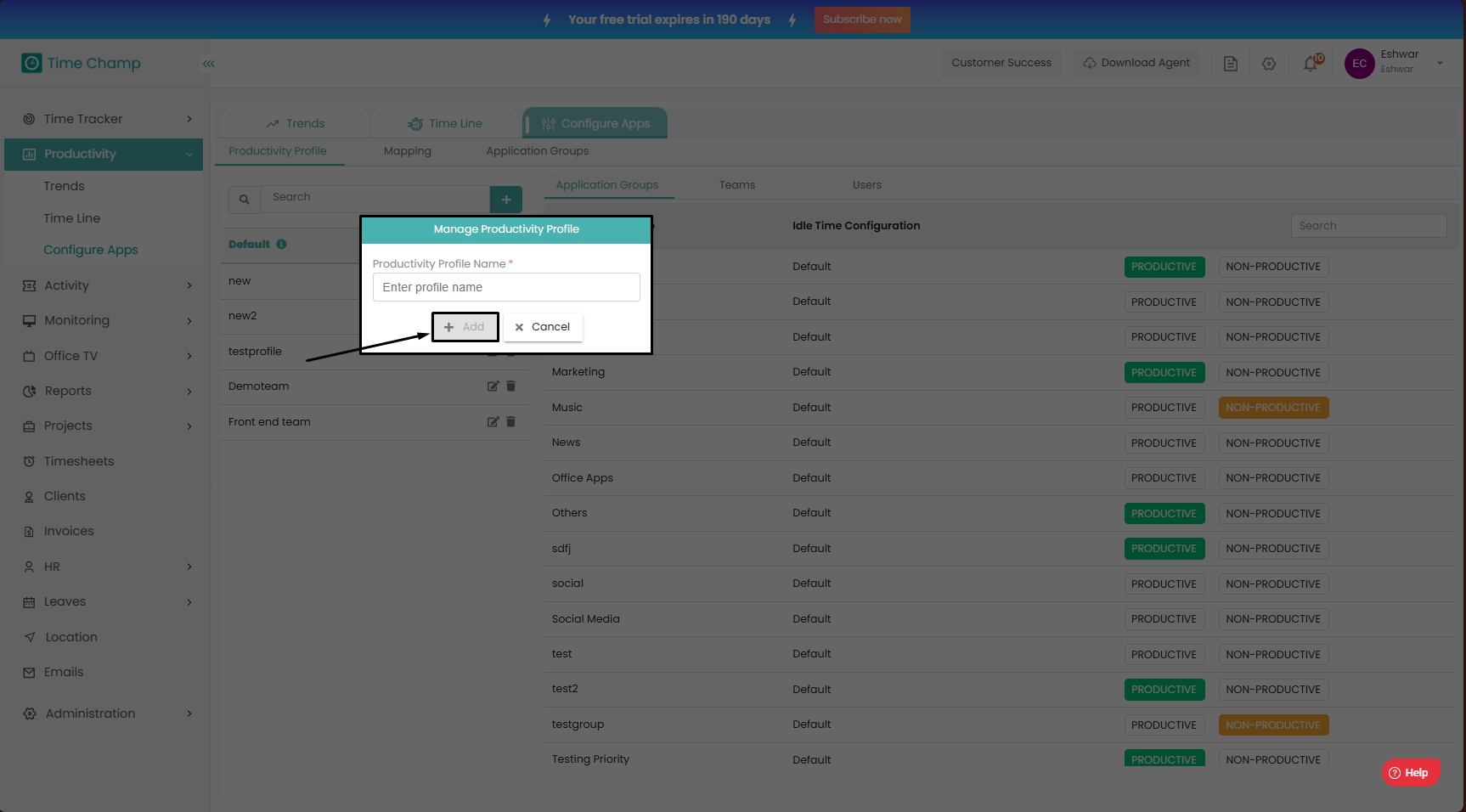 Follow the steps to add new productivity profile.