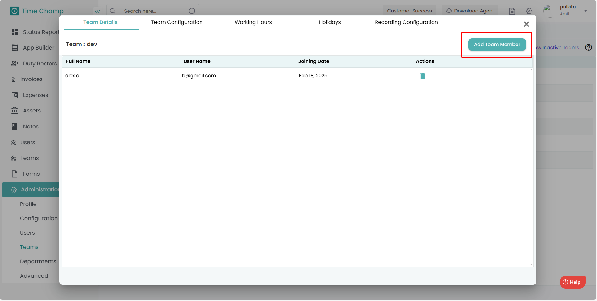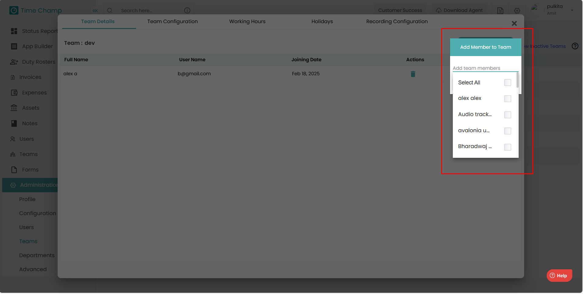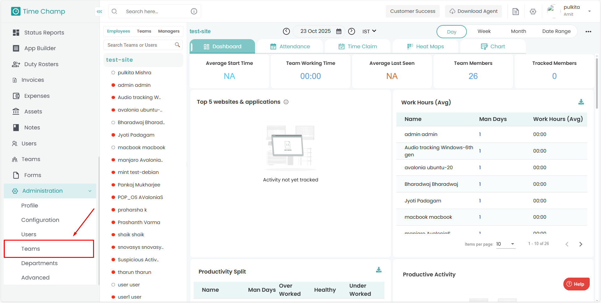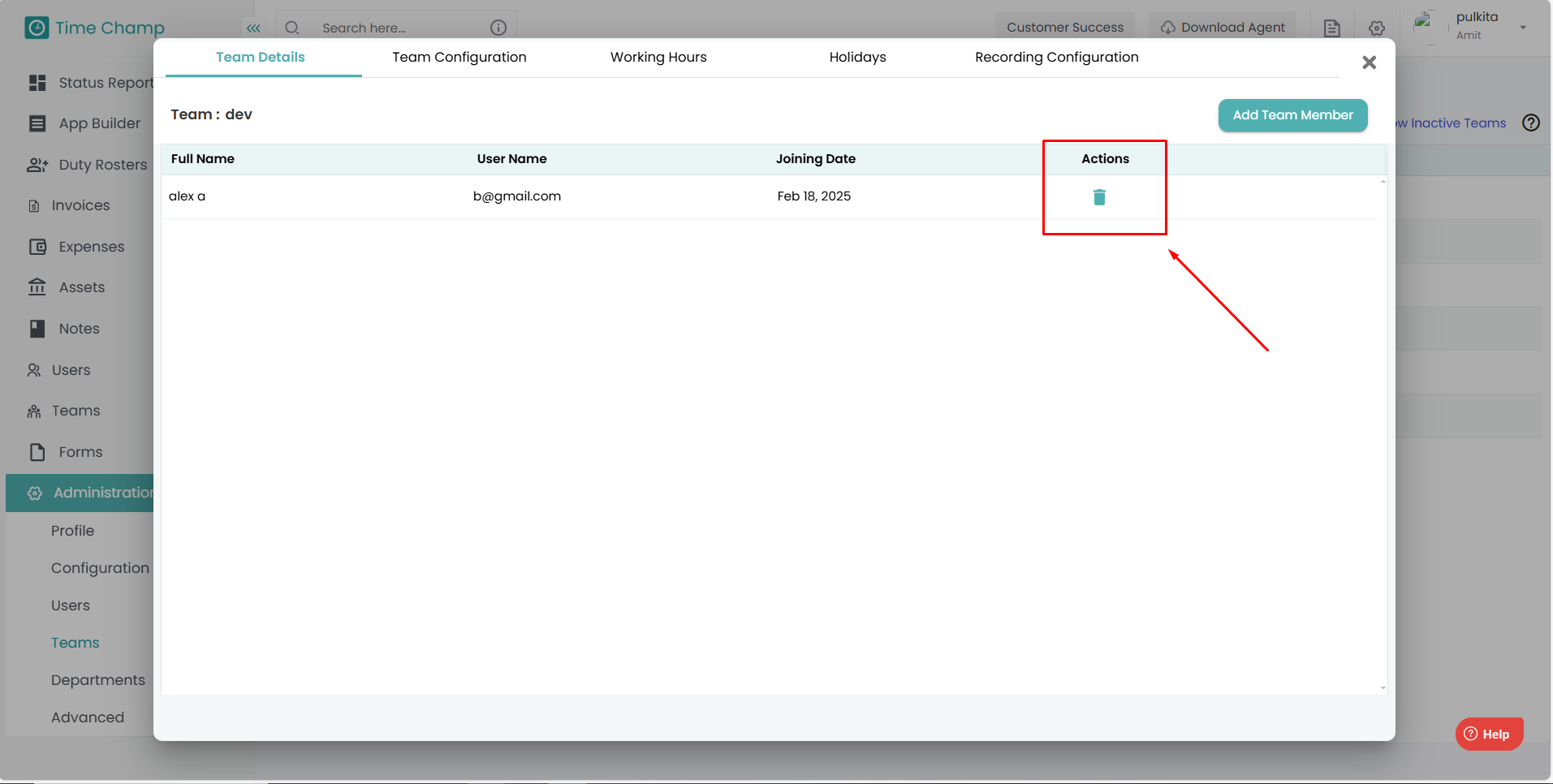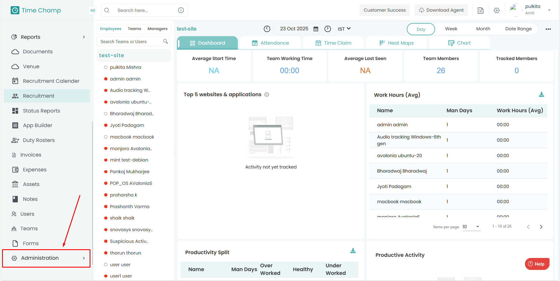 Follow the steps below to access and manage team-level configurations under the Administration module: Step 1: Log in to your Time Champ account. From the left-hand menu, click on the Administration module. Step 2: Under the Administration module, ...