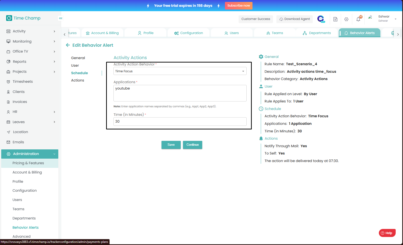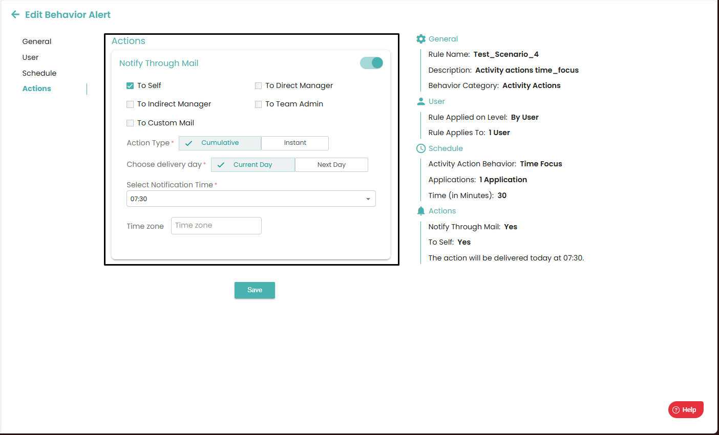 Finally, you click on save to create a new Behavior alert.