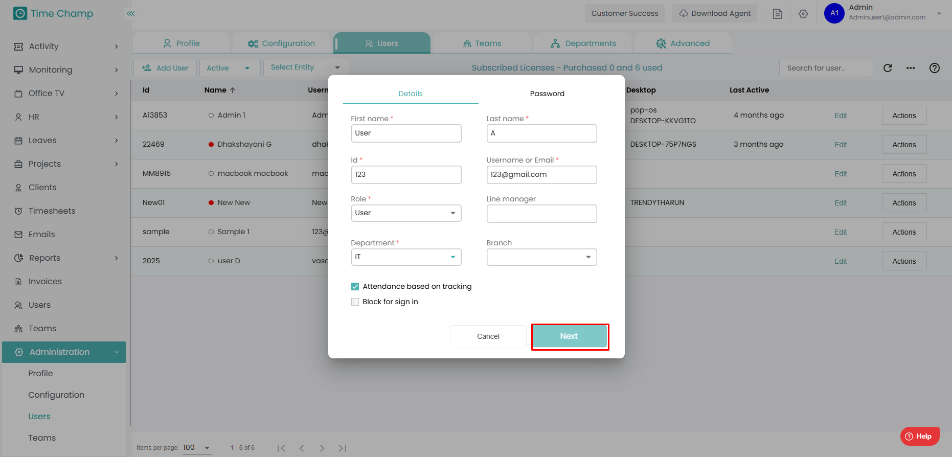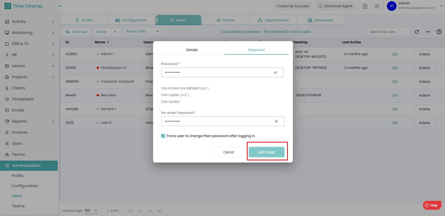 Step 6: Click on Add user and you can see the user in the dashboard.
