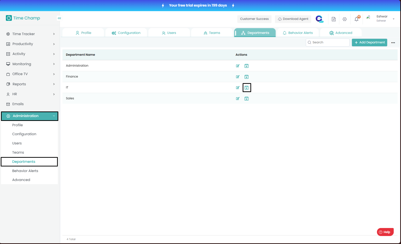 Follow the steps to edit a department. Step 1: Log into the site utilizing your credentials. Step 2: Navigate to the Administration Module and then to the Departments section. Step 3: Now you can view the edit department option in the highlighted ...