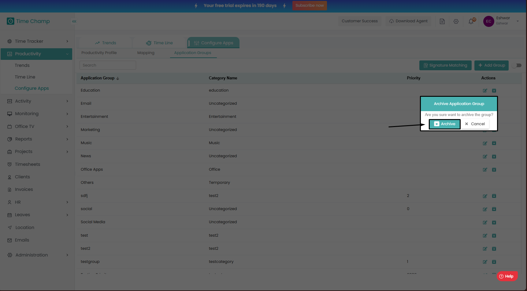 Follow the steps to archive an existing category. Step 1: Log into the site utilizing your credentials. Step 2: Navigate to the Productivity Module and then to the Configure Apps section. Step 3: Navigate to the Application Groups Sub Section as ...