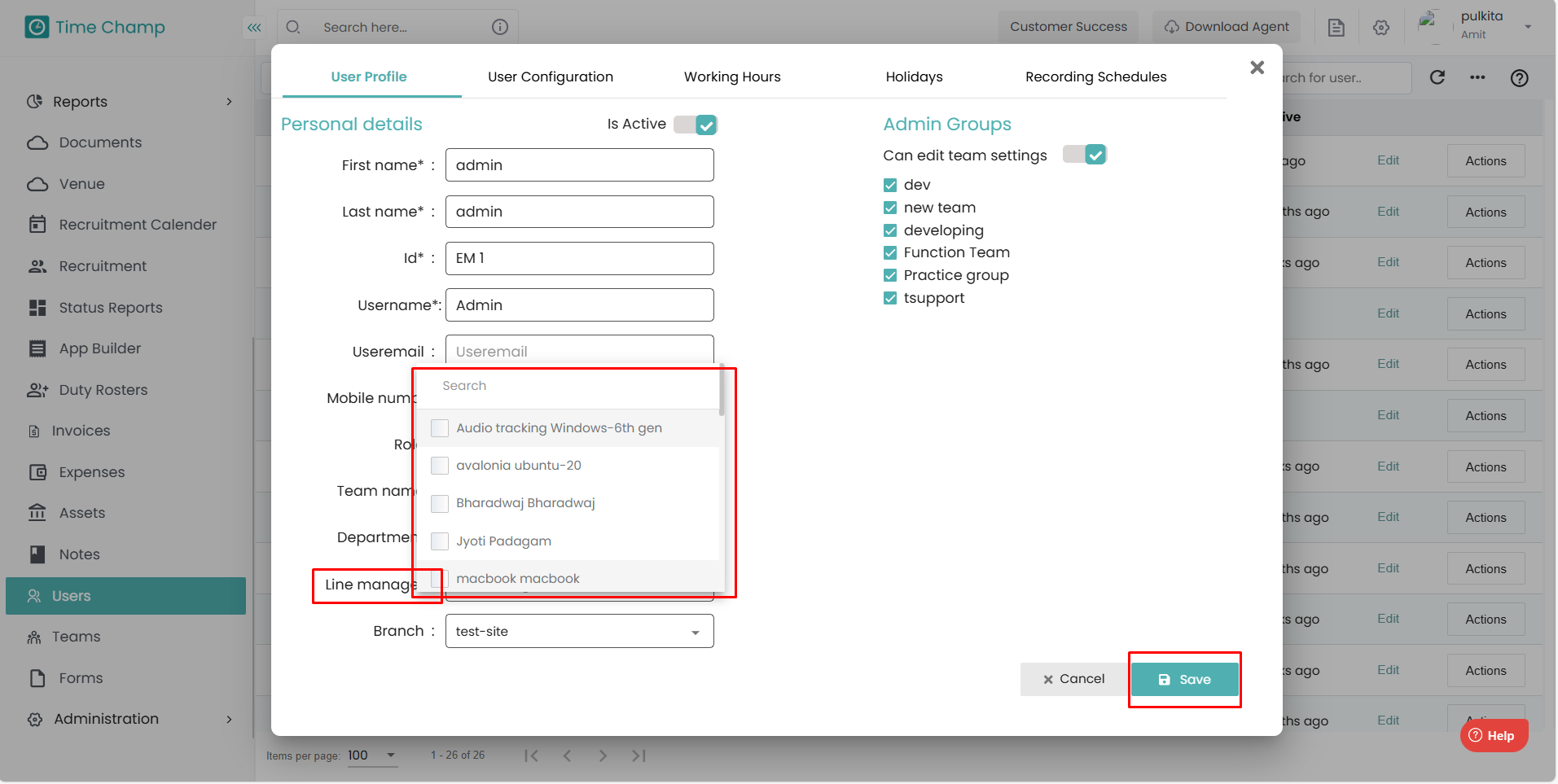 Follow the steps below to assign a Line Manager to employees in your Time Champ account: