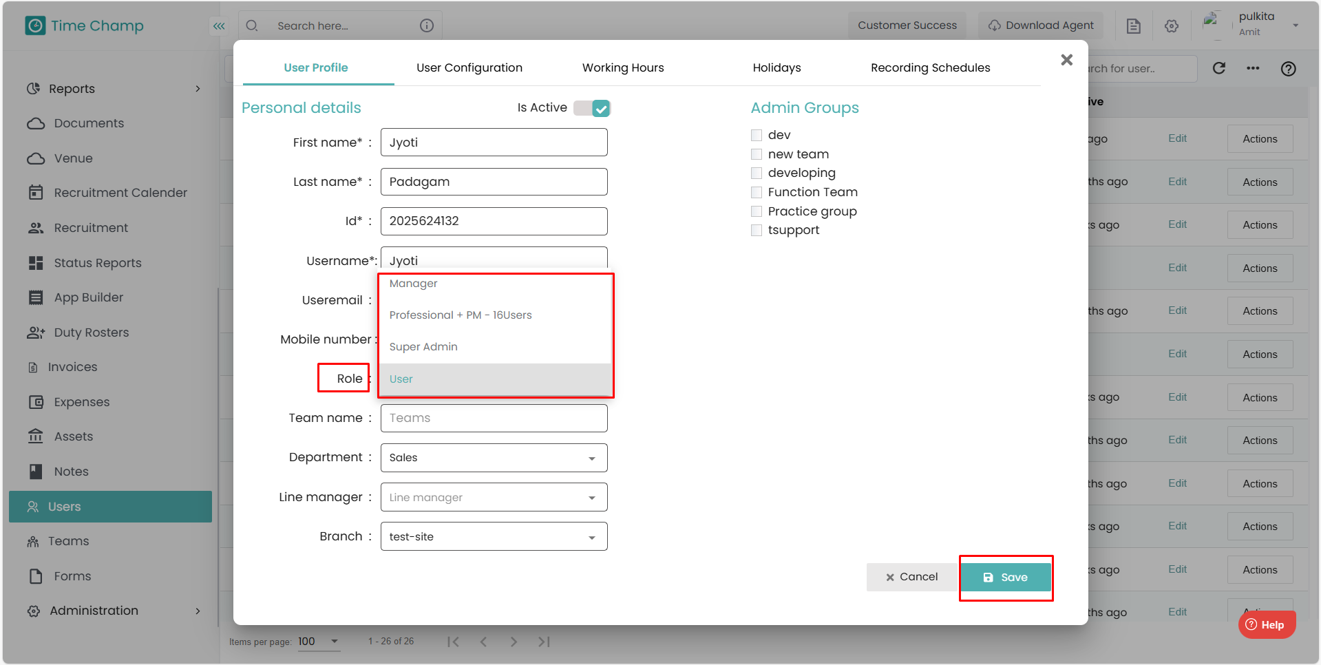 Save to update the user’s role.