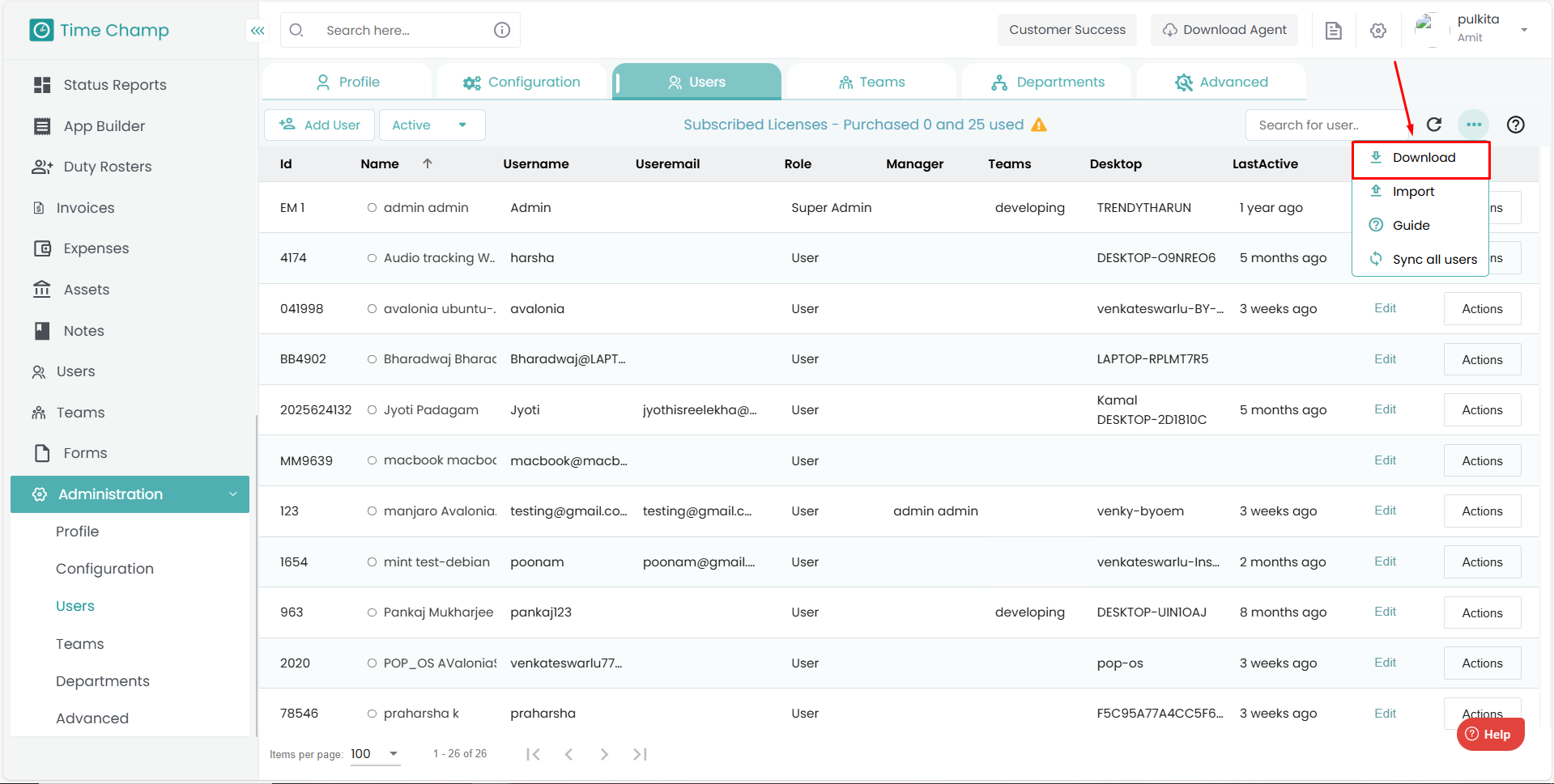 Click on the three dots (⋮) at the top-right corner of the Users page.