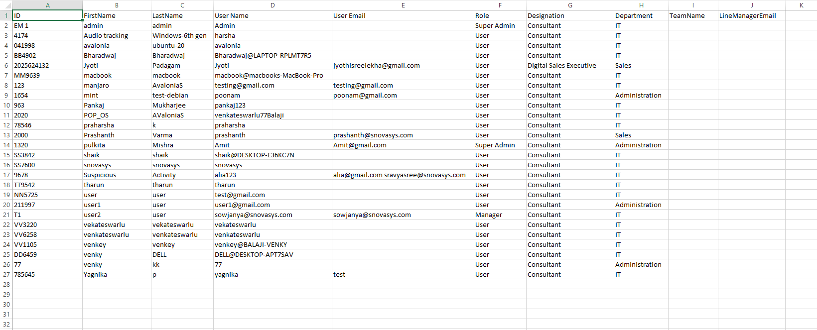 Open the downloaded Excel file and enter the details of the new users in the provided format and save it.