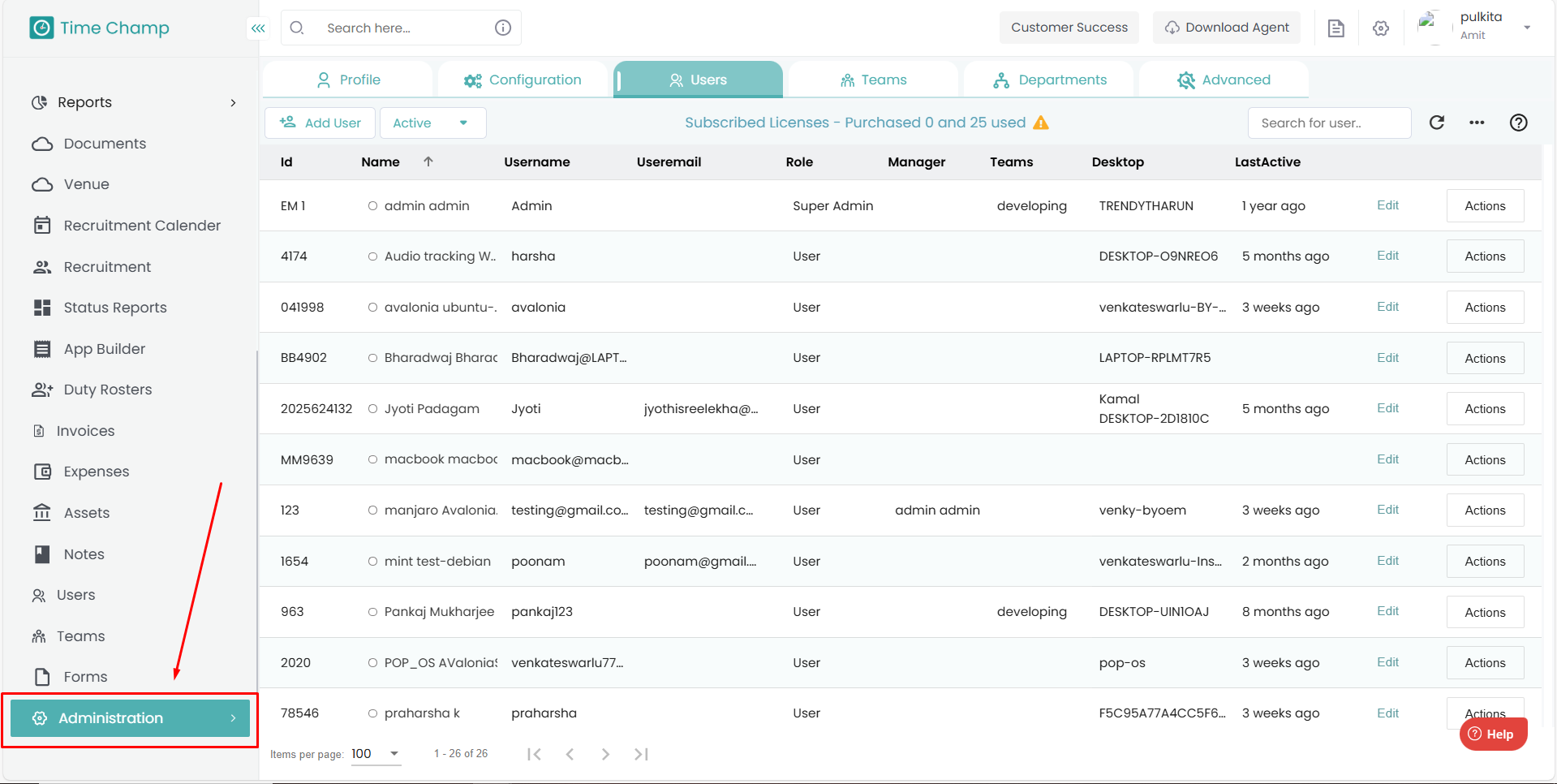 Follow the steps below to add multiple users at once using the Import/Export option under the Administration module: