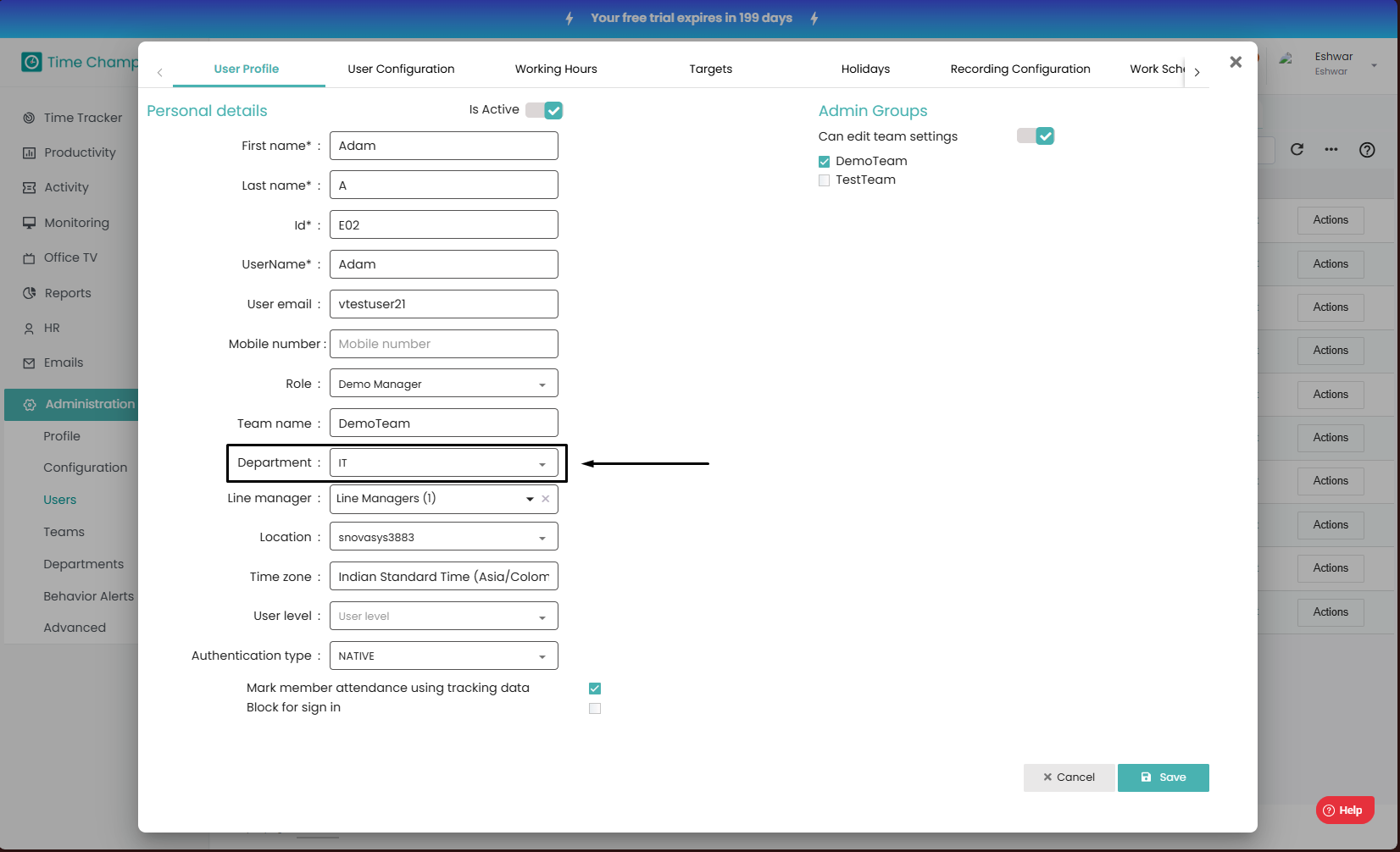 How to Change User Department?