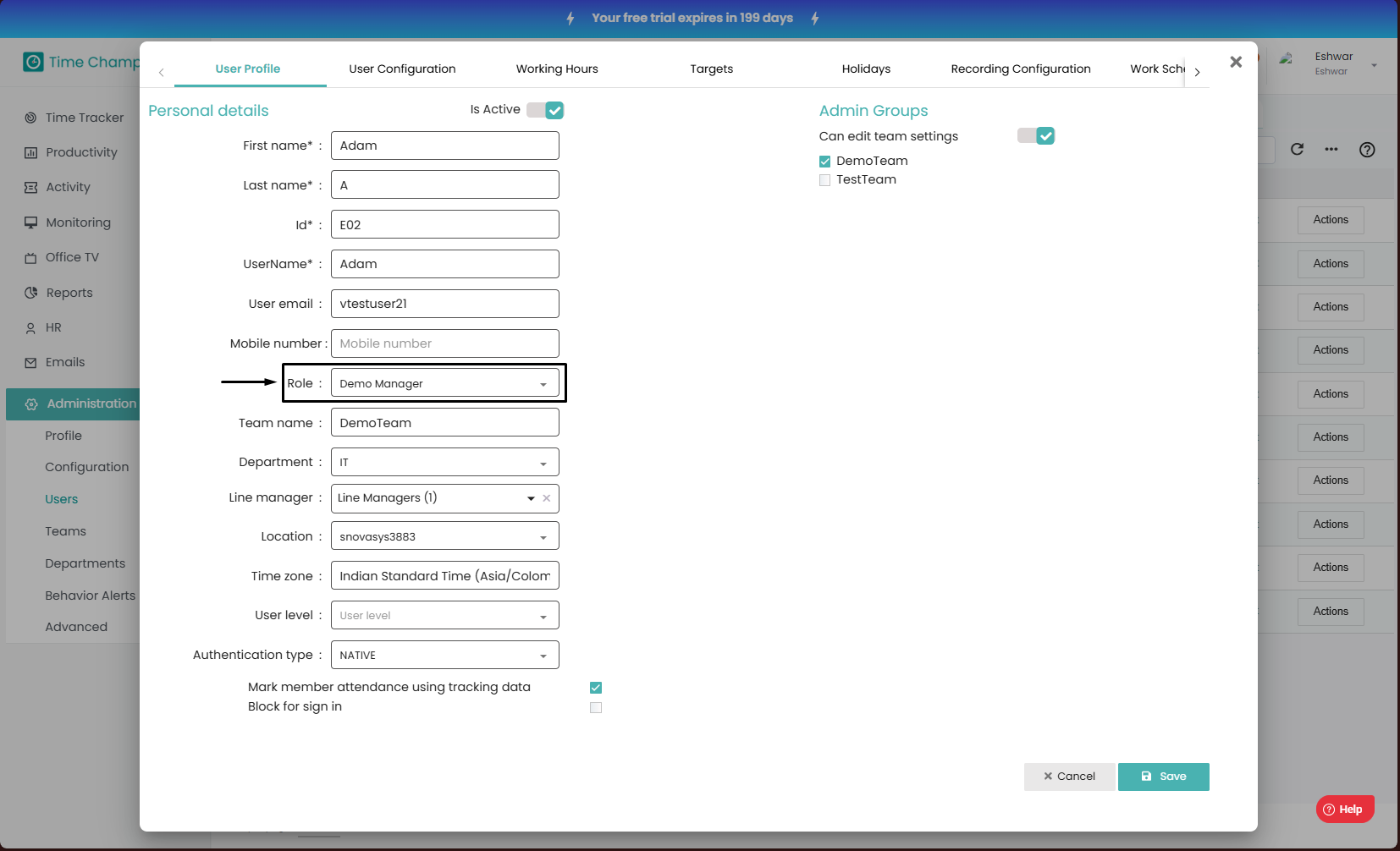 Follow the steps to change the productivity profile of a user with an existing productivity profile. To assign productivity profile for the first time at user level, please click on this link to be redirected to the respective guide. Step 1: Log into ...