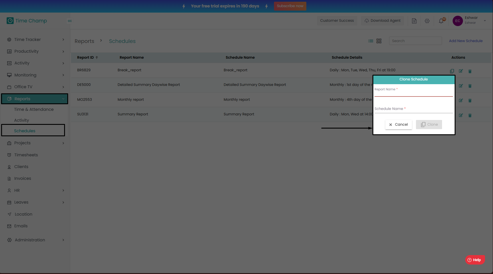 Follow the steps to add a Schedule. Step 1: Log into the site utilizing your credentials. Step 2: Navigate to the Reports Module and then to the Schedules section. Step 3: Click on add new Schedule as shown in the highlighted area in the below image. ...