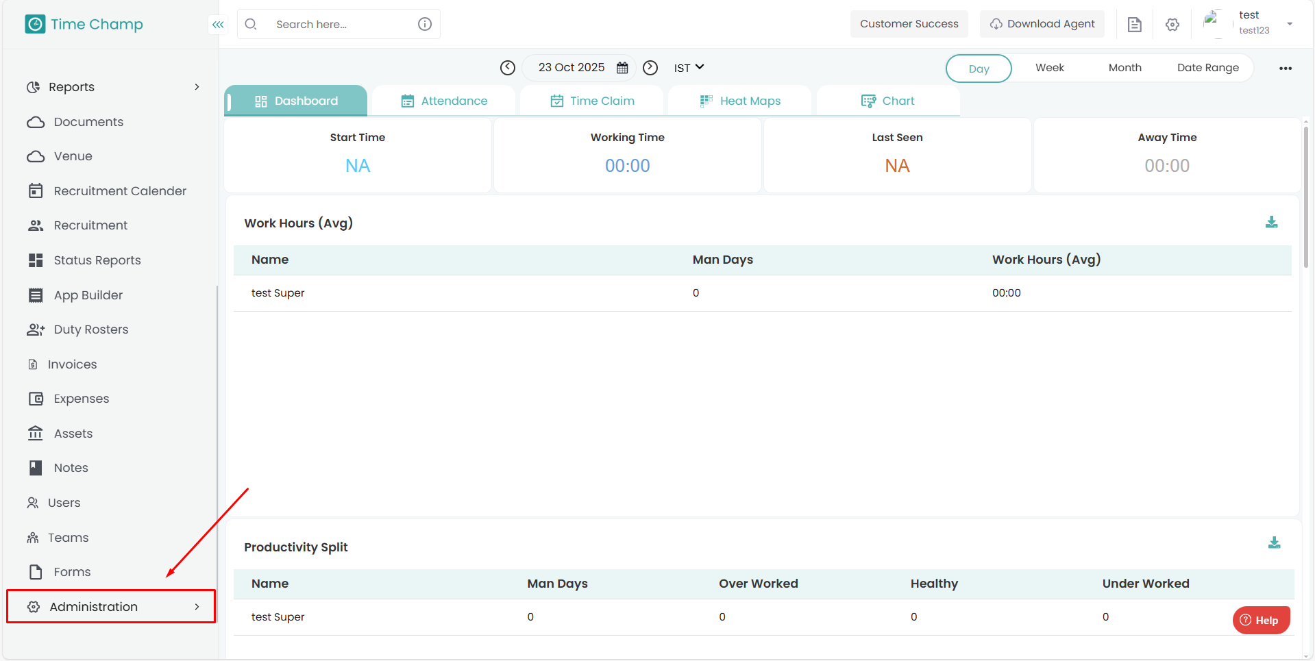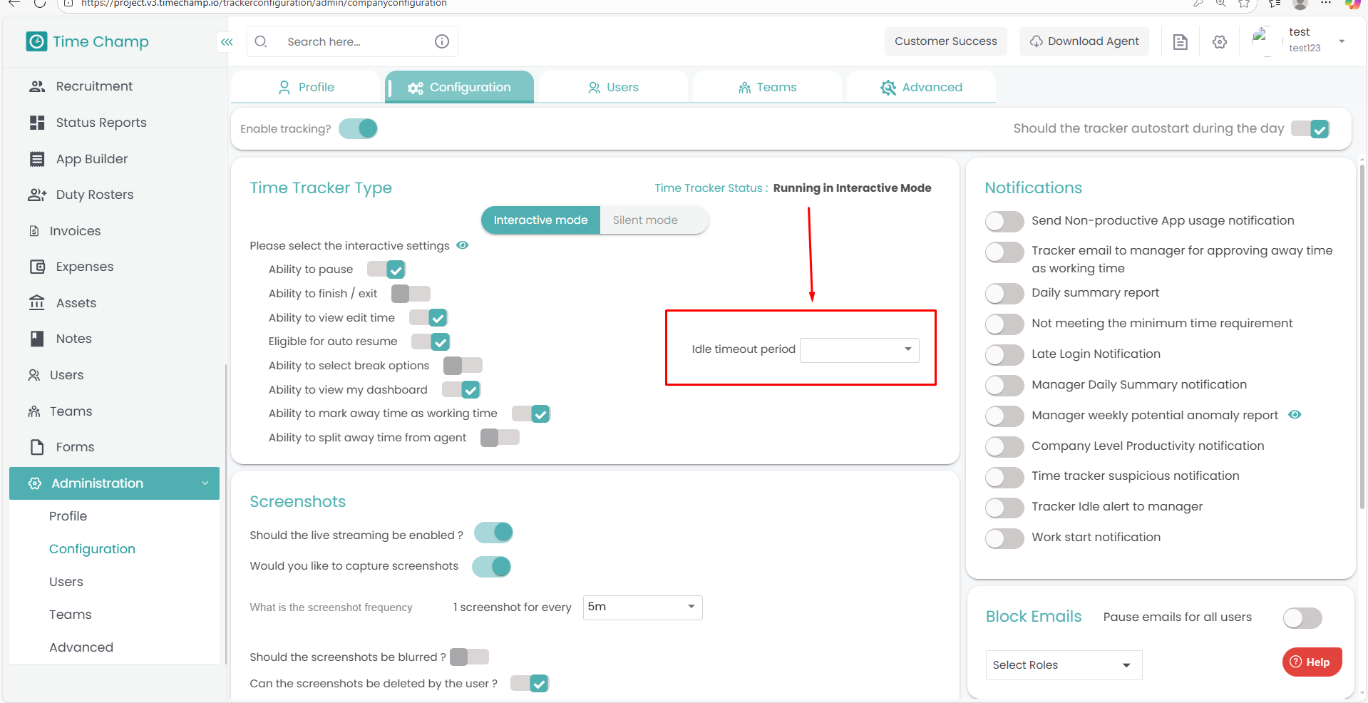 Follow the steps below to configure Screenshots in the Time Champ portal: Step 1: Open the Time Champ site and log in using your Username and Password. Once logged in, navigate to the bottom-left corner of the dashboard. Click on Administration. ...