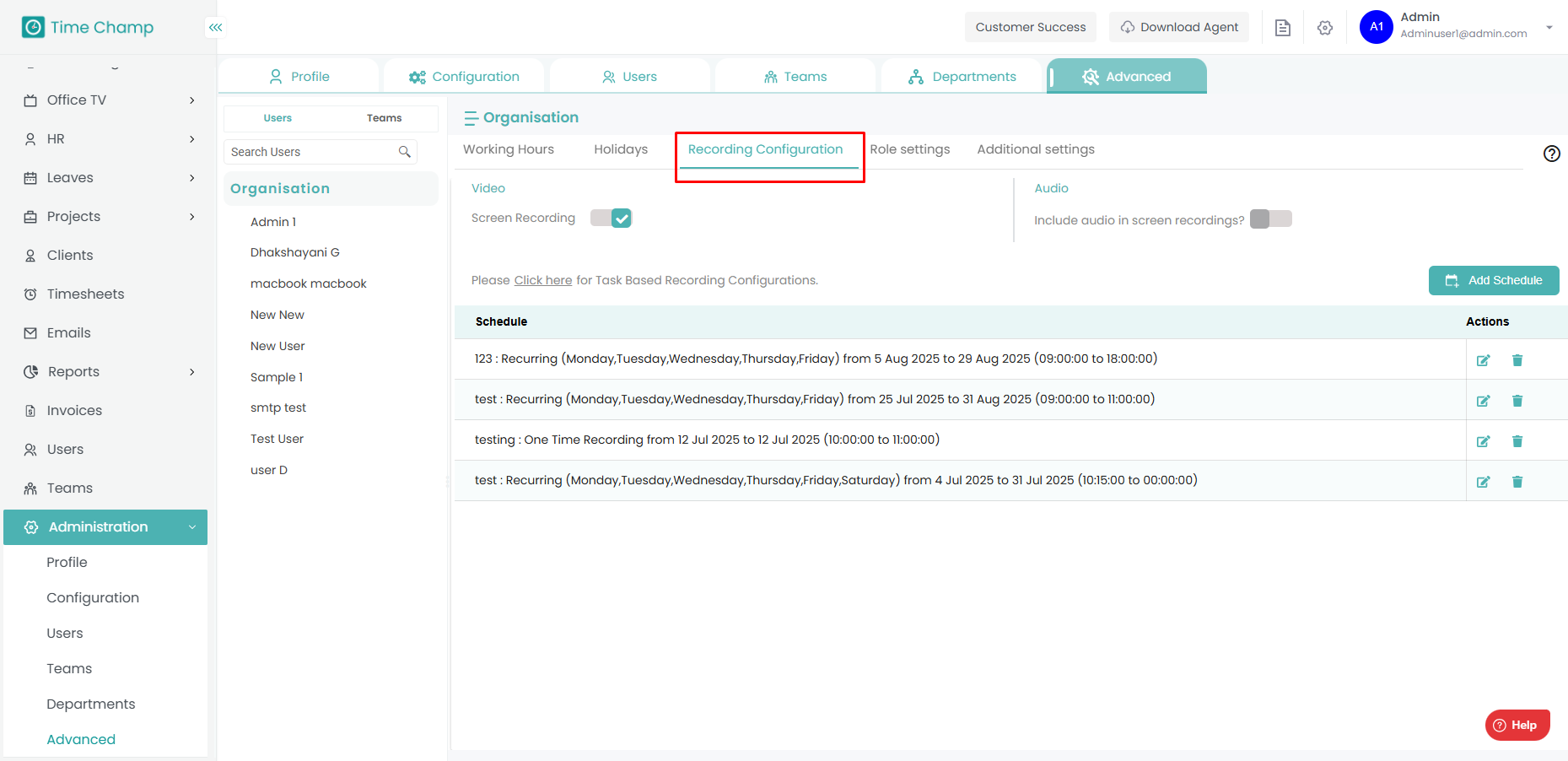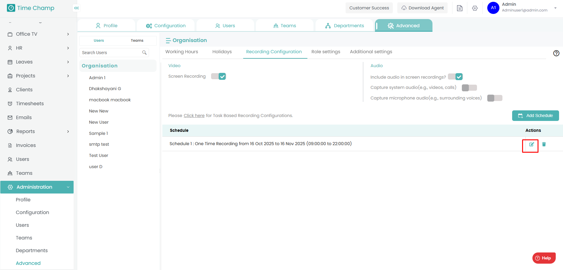 Step 8: To edit the existing recording schedule, Click on edit option.