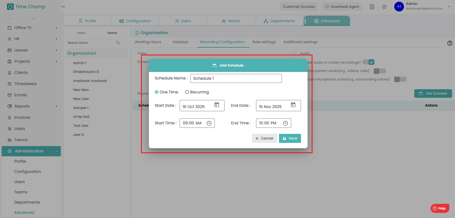 Step 6: To capture the screen recordings, you have to schedule the timings for sure .