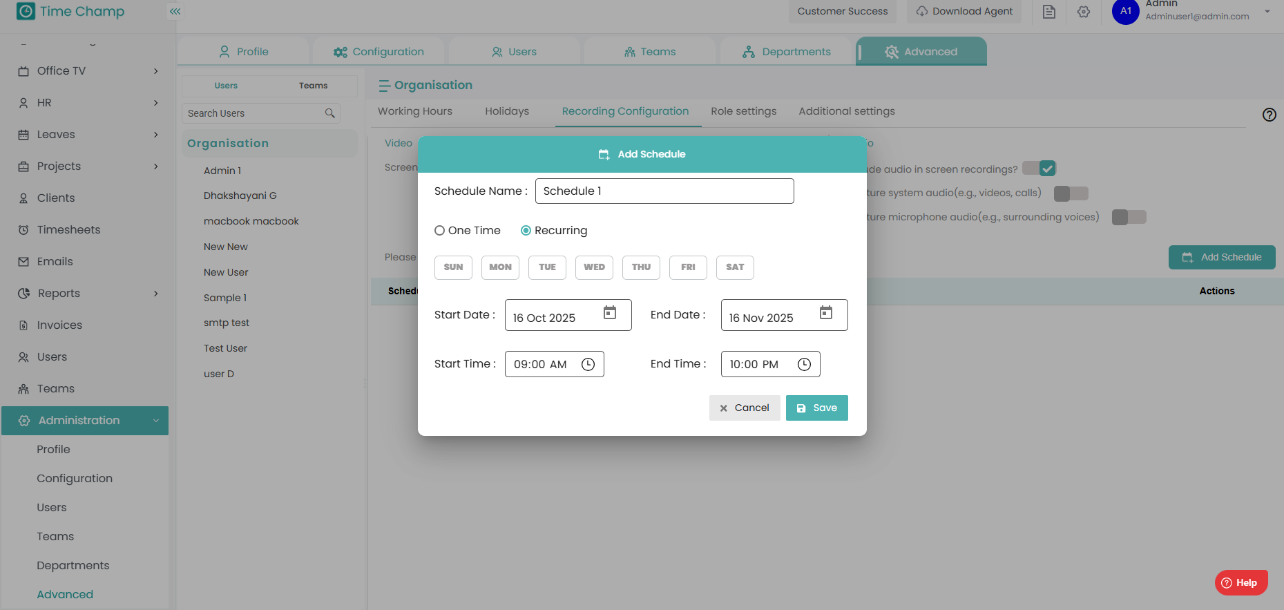 You can also recurring recording schedule. Here you can select particular days in a week you want to capture the recording.