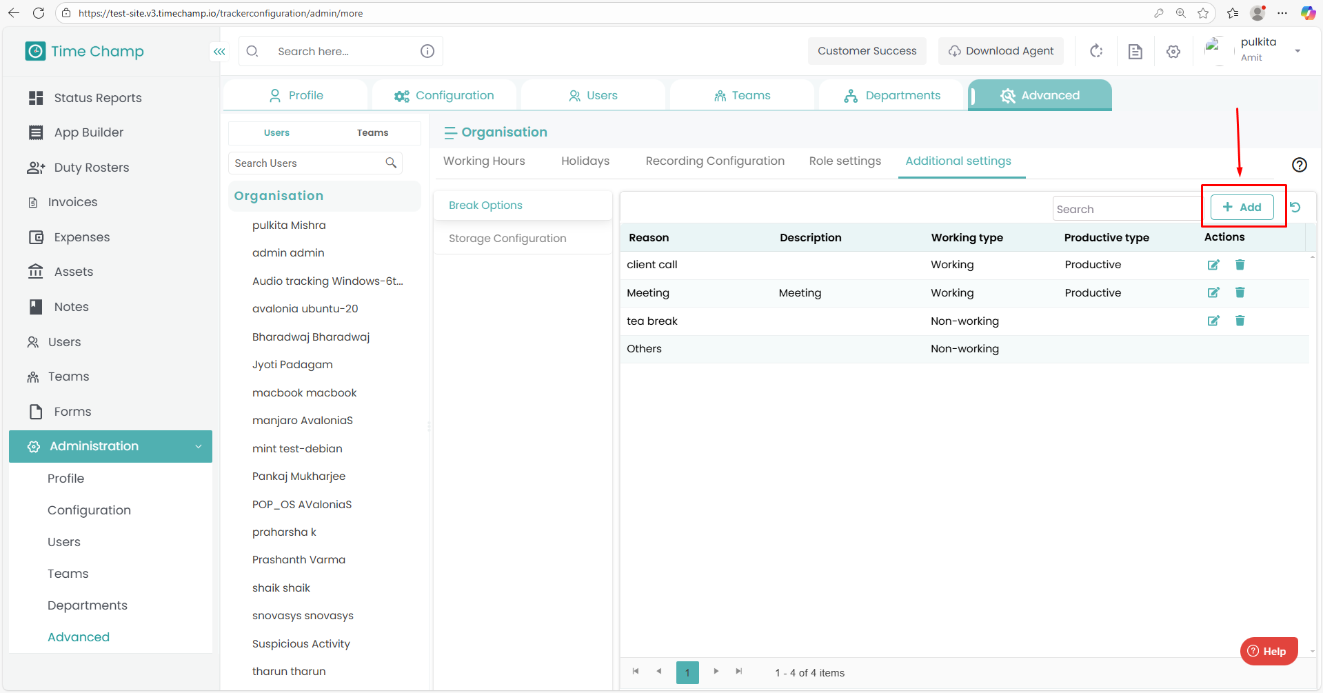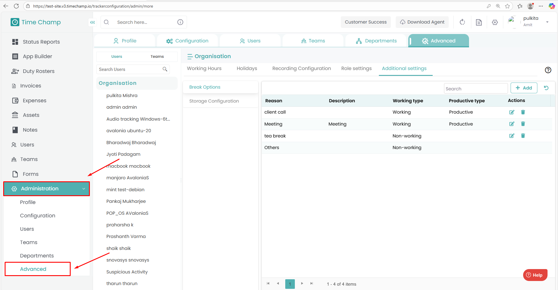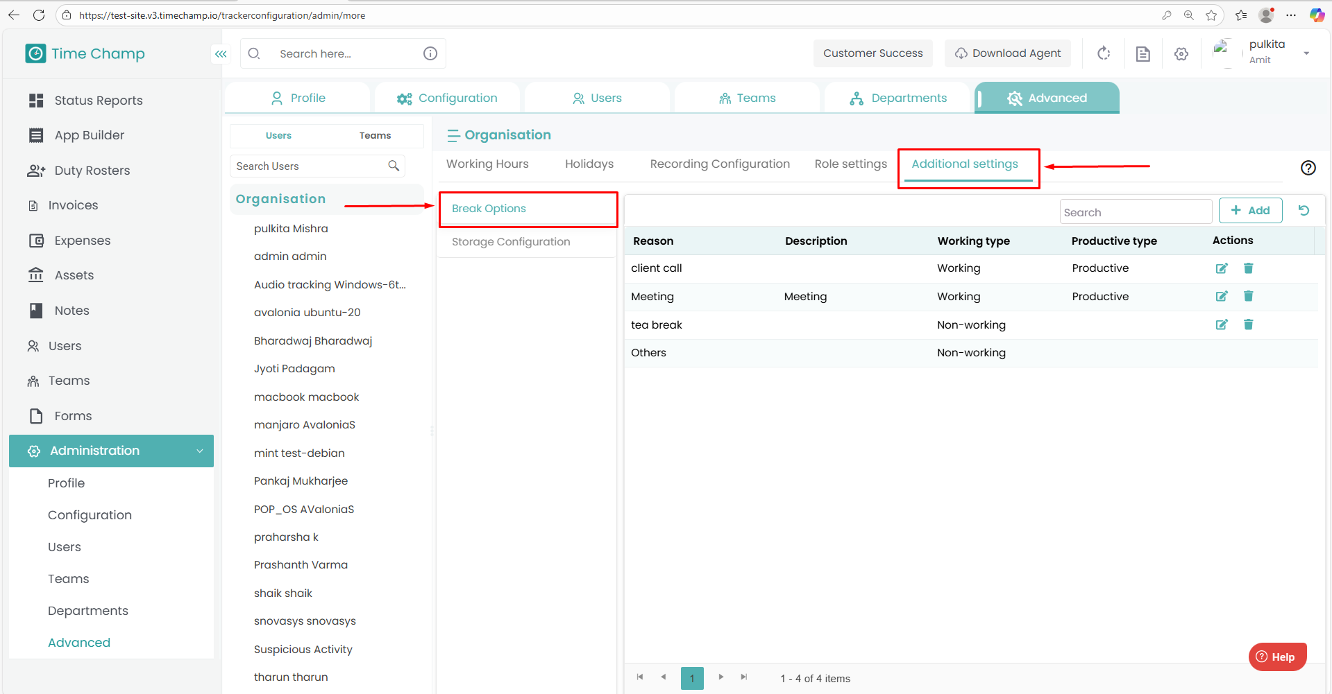 Follow the steps below to configure the Break Options in the Time Champ portal: