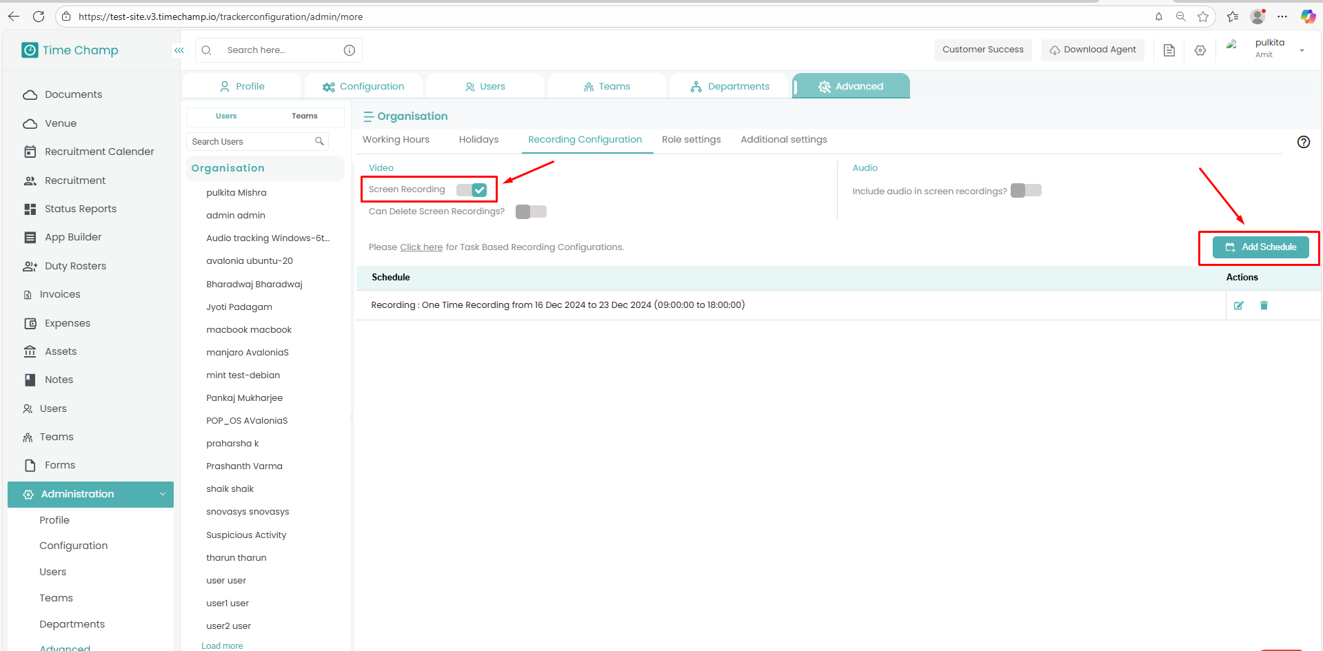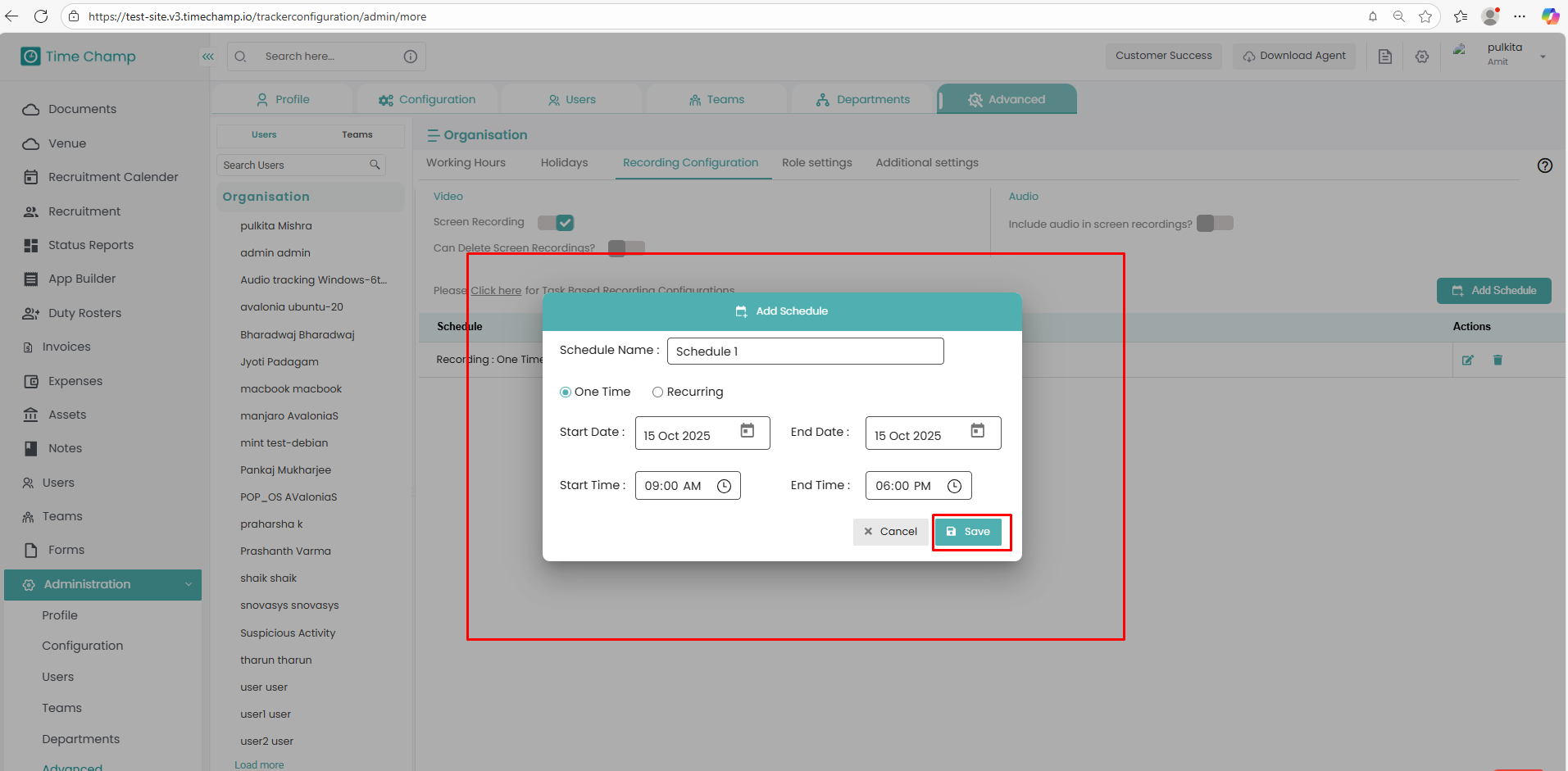 Follow the steps below to configure and schedule screen recordings: