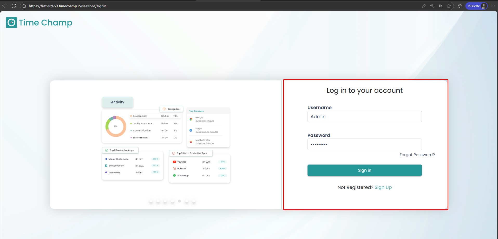 Open the Time Champ site and log in using your Username and Password.
