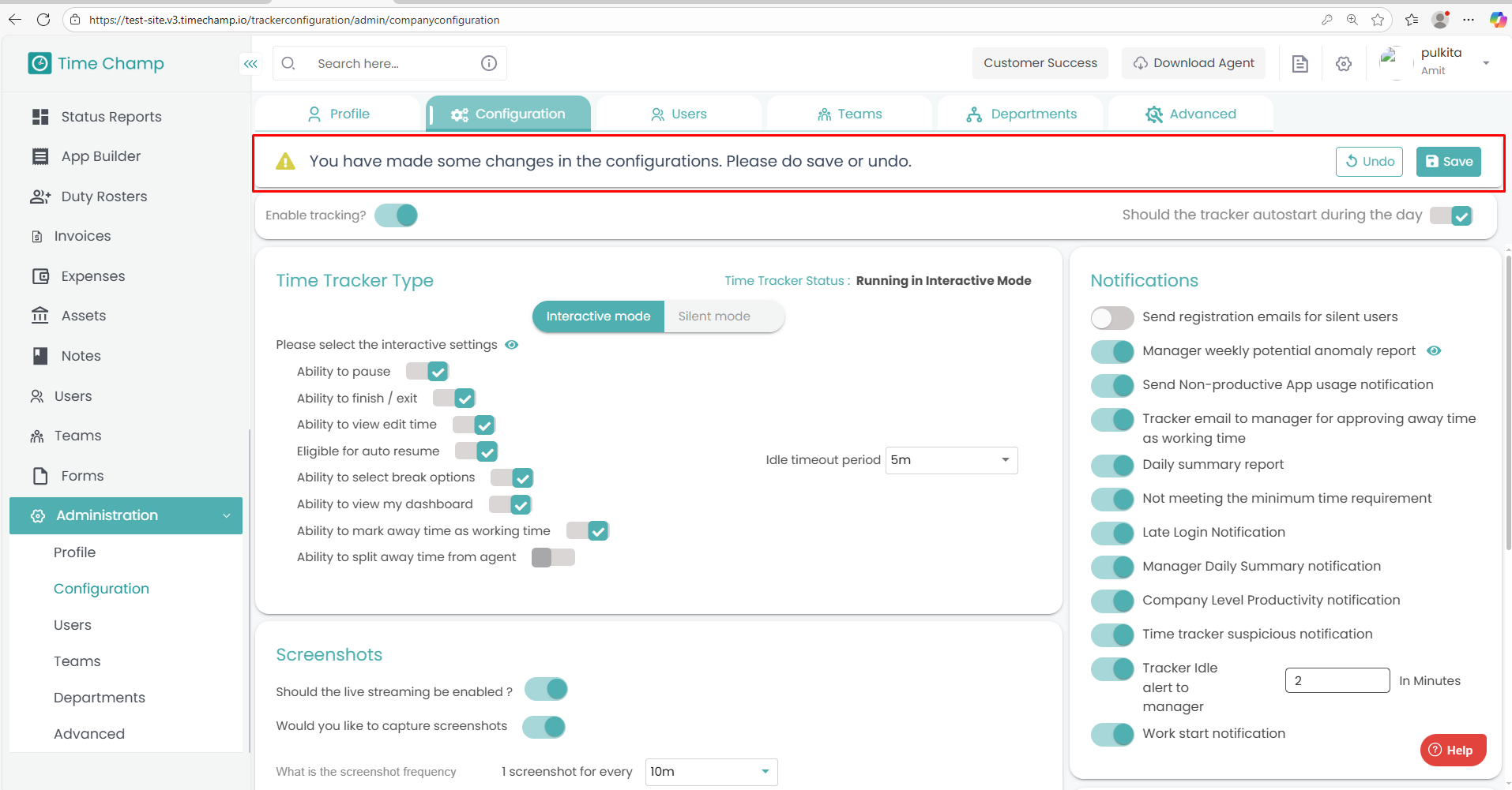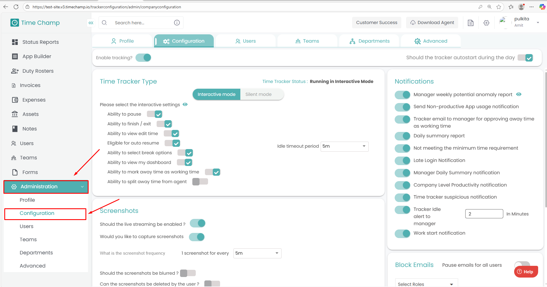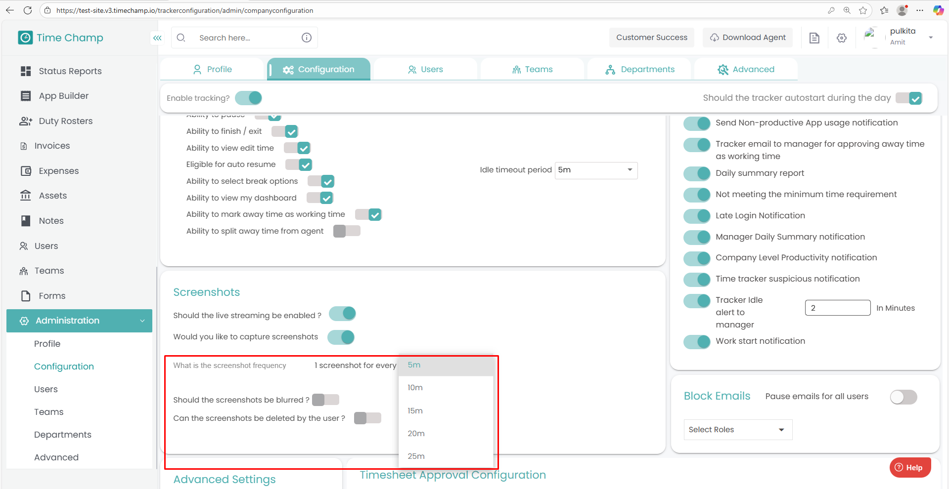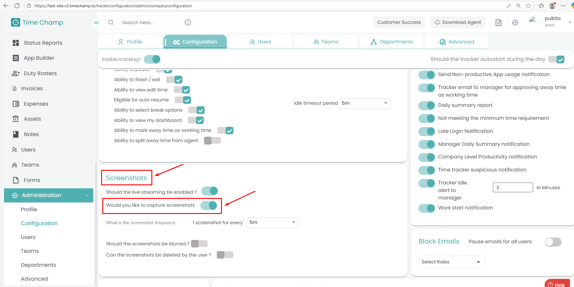Follow the steps below to configure Screenshots in the Time Champ portal: