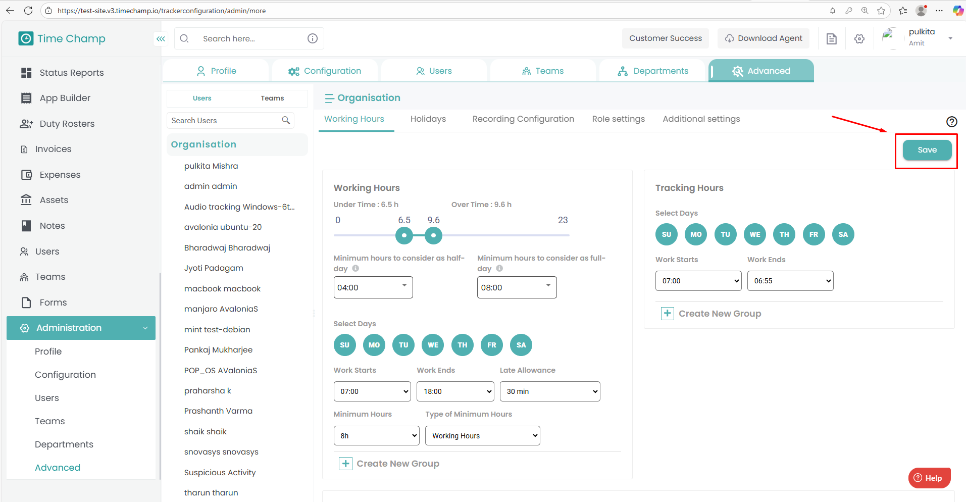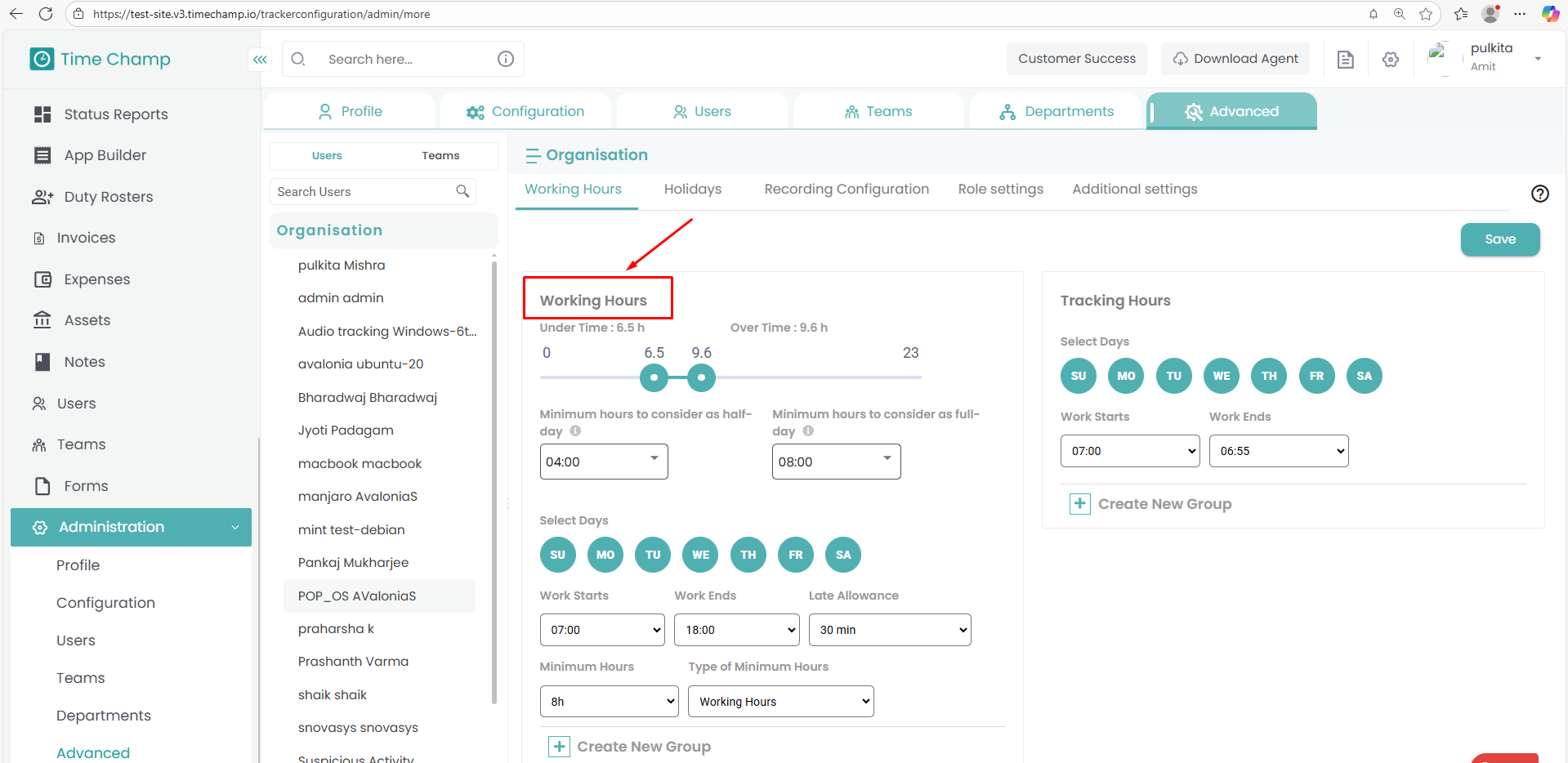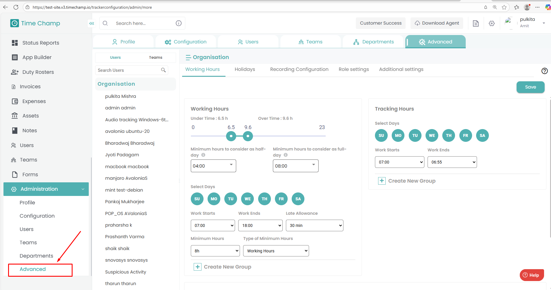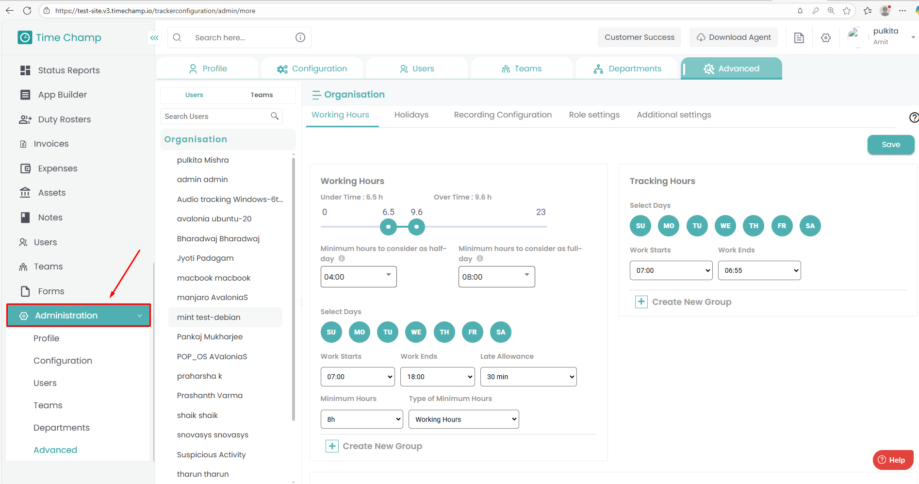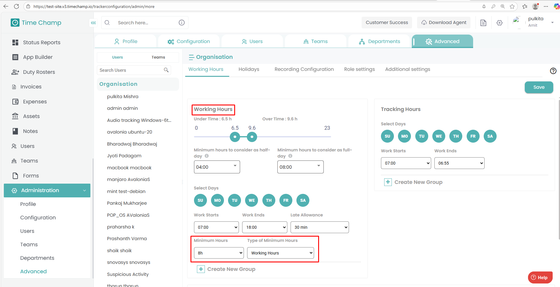 This helps the Super Admin monitor whether users meet the required minimum working duration.