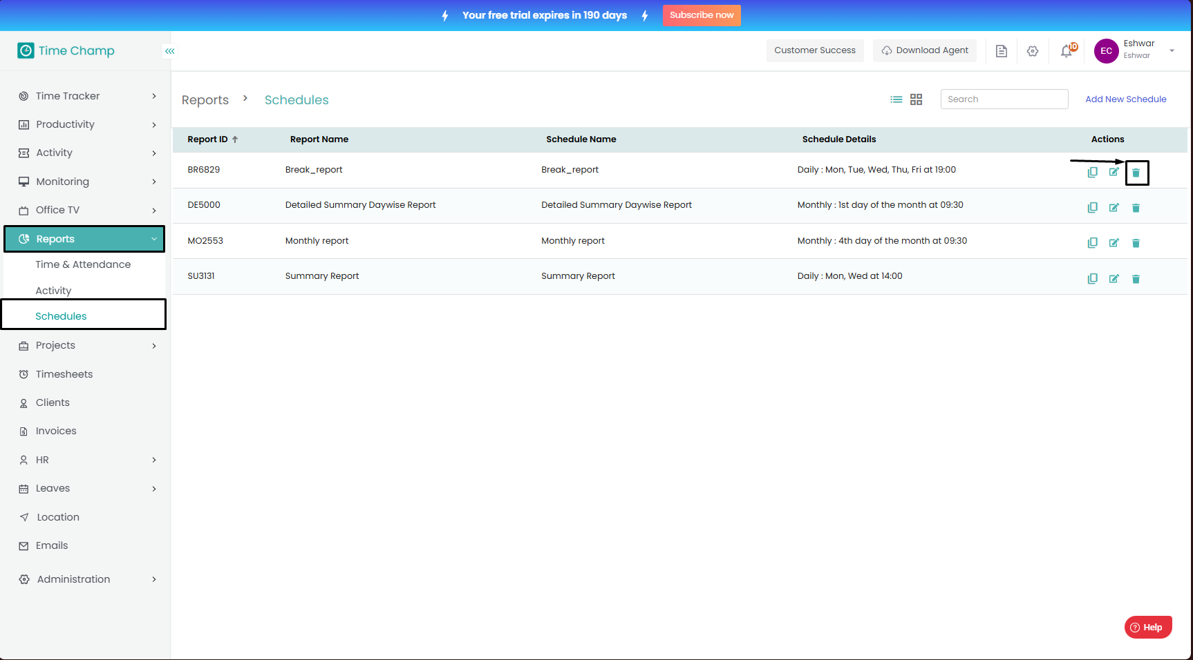 Delete as shown in the highlighted area in the below image to permanently delete this Schedule.