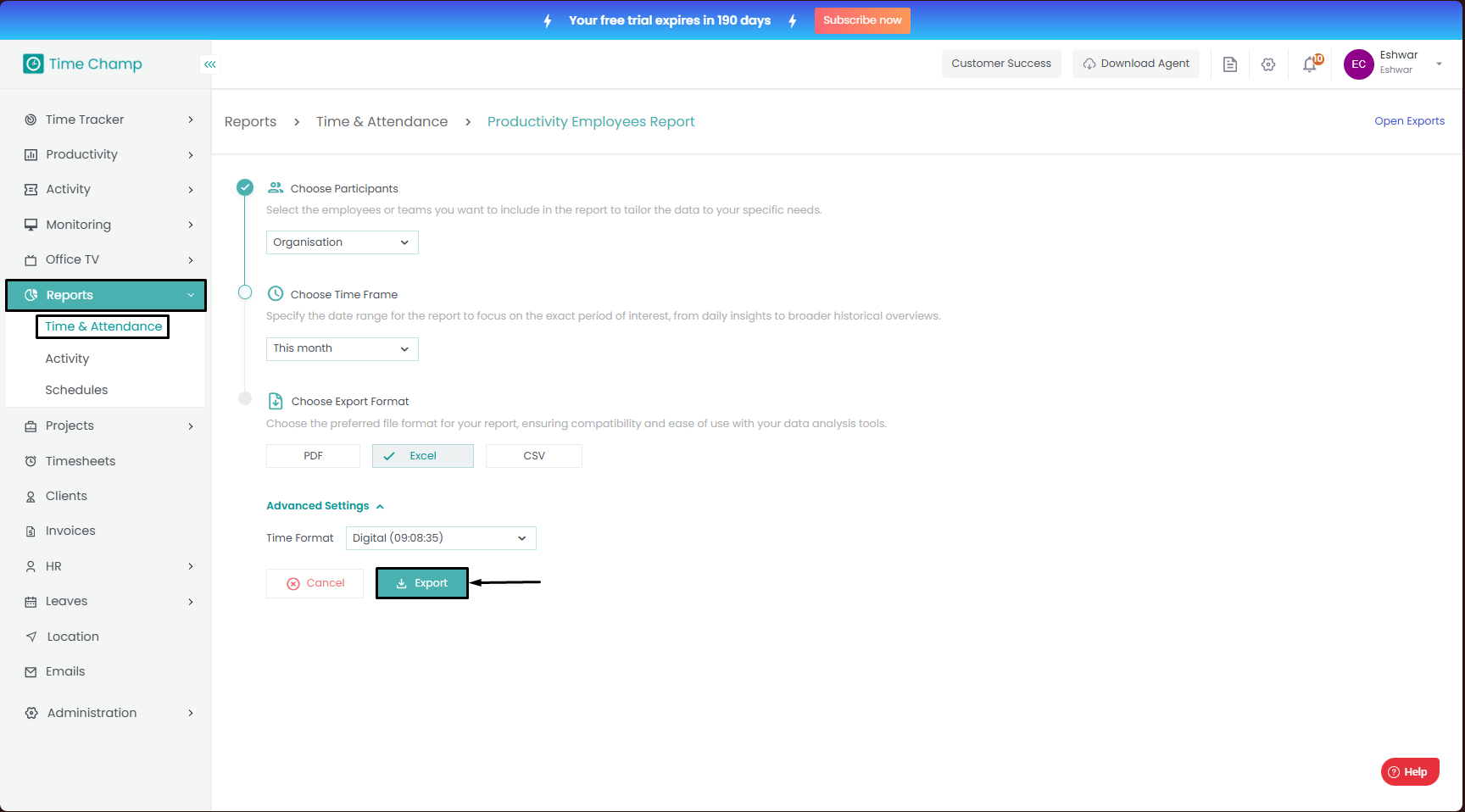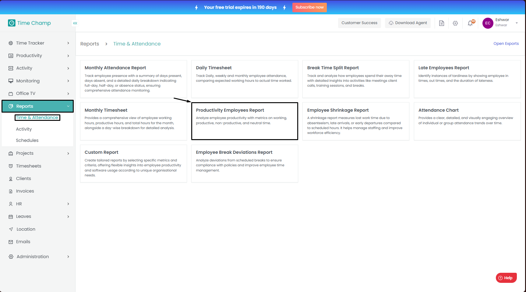 Follow the steps to access and download the productivity employees report.