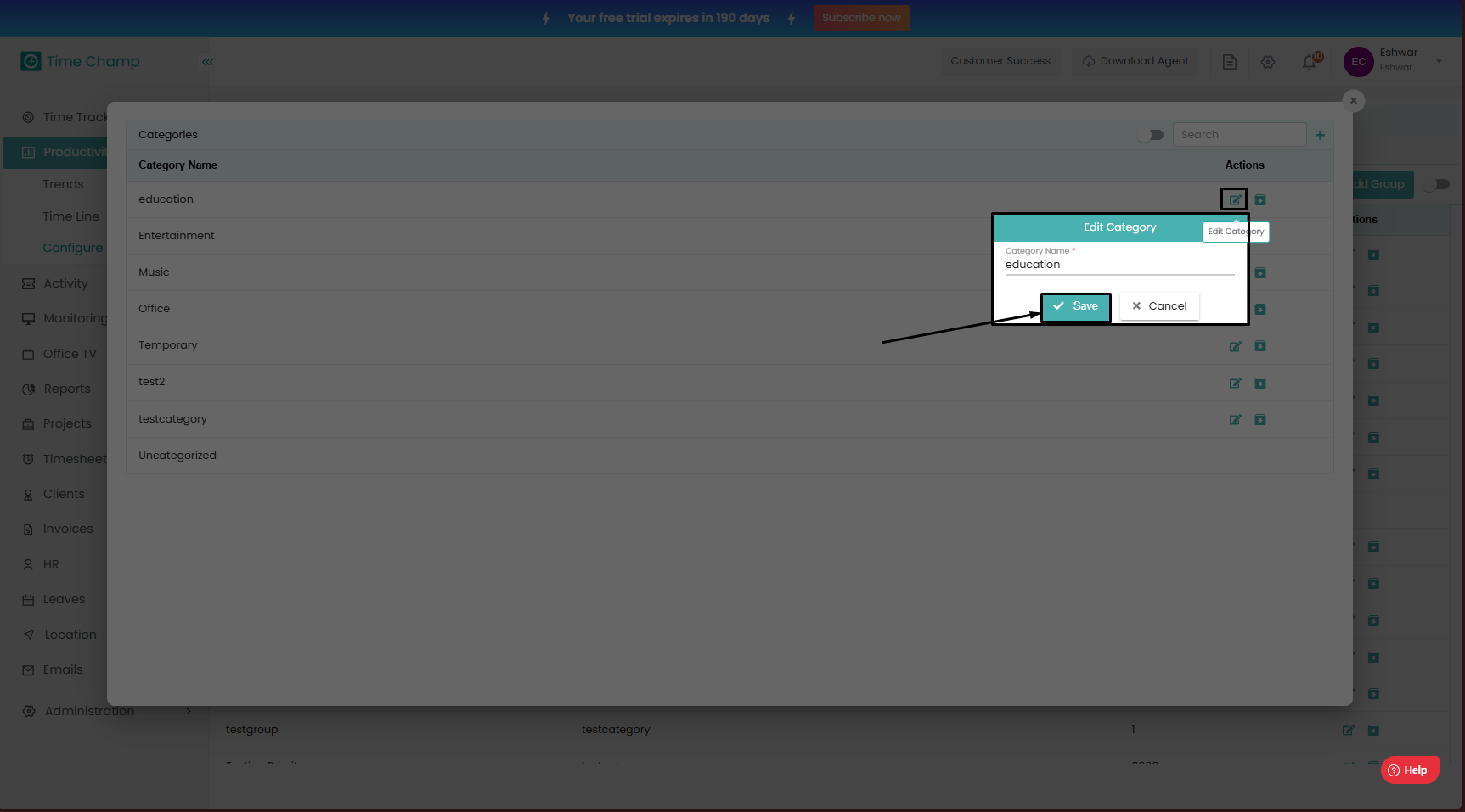 Follow the steps to edit the name of an existing category.