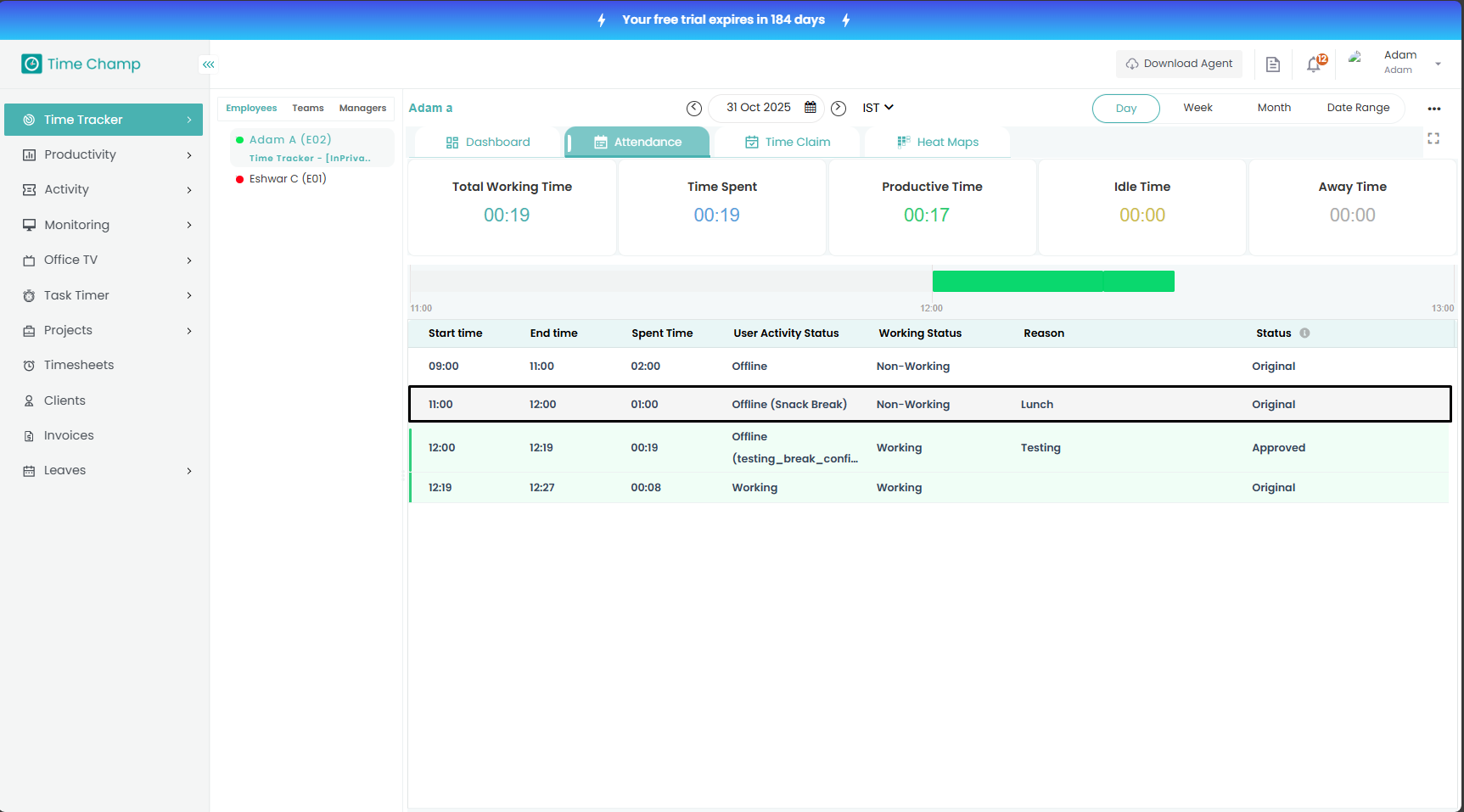Follow the steps to edit time of a user in Attendance Module.