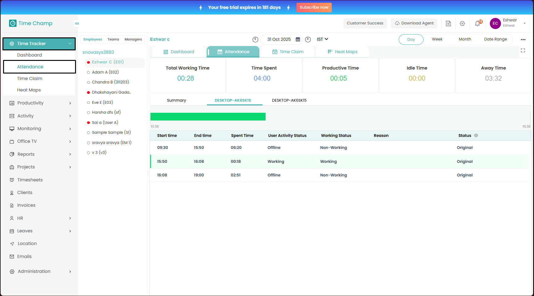 Navigate to the Time Tracker Module and then to the Attendance section.