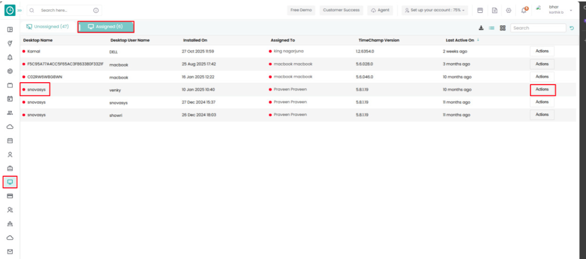 Step 4 : After that, go to Assigned Desktops and click on actions on the desktop you want to