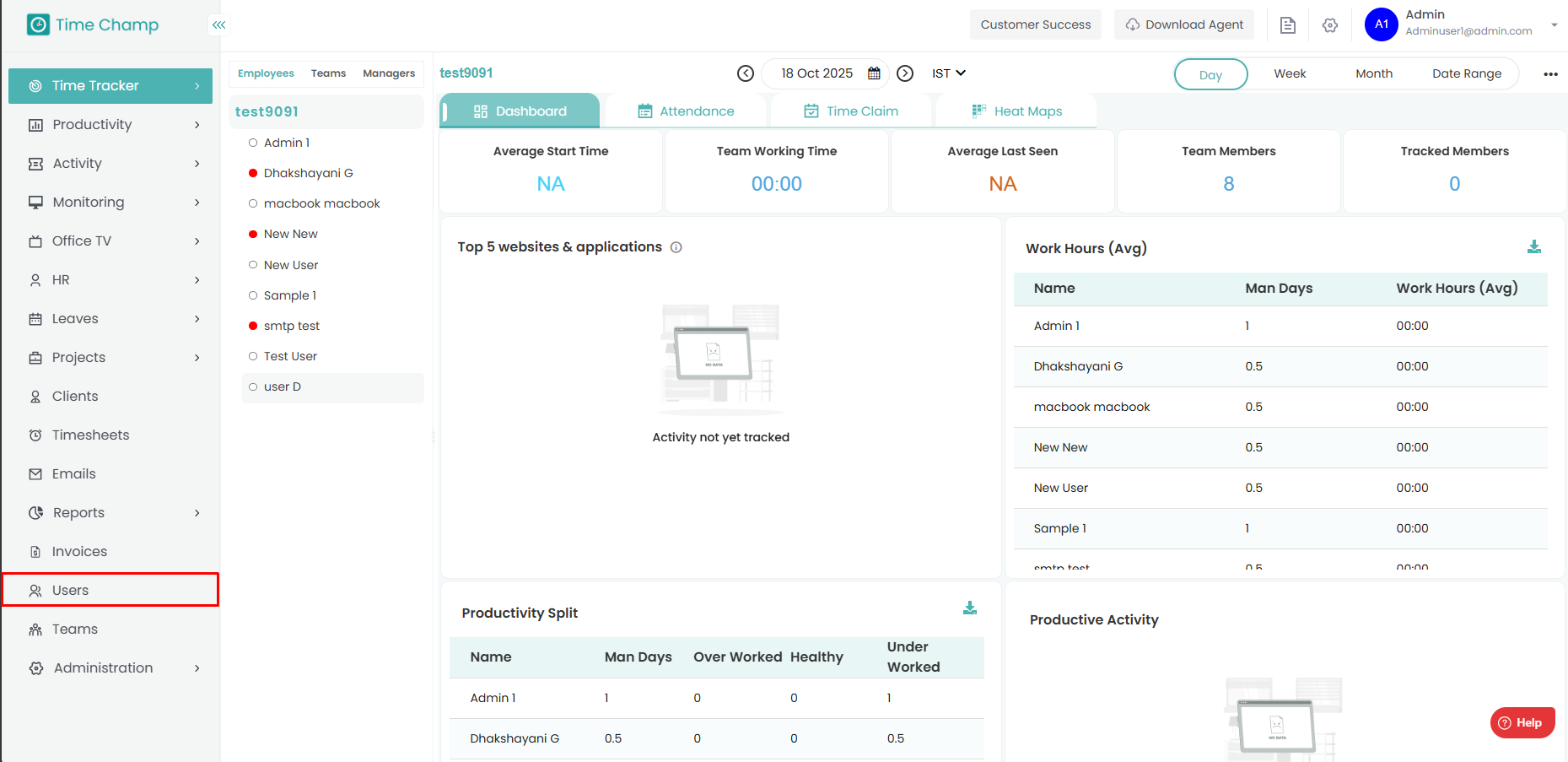 Step 1: Login to your Time champ account with credentials. Step 2: Navigate to Time tracker. Under Time tracker, you have four tabs. Navigate to dashboard. The Dashboard provides a comprehensive overview of data from all Time Tracker modules. Next to ...