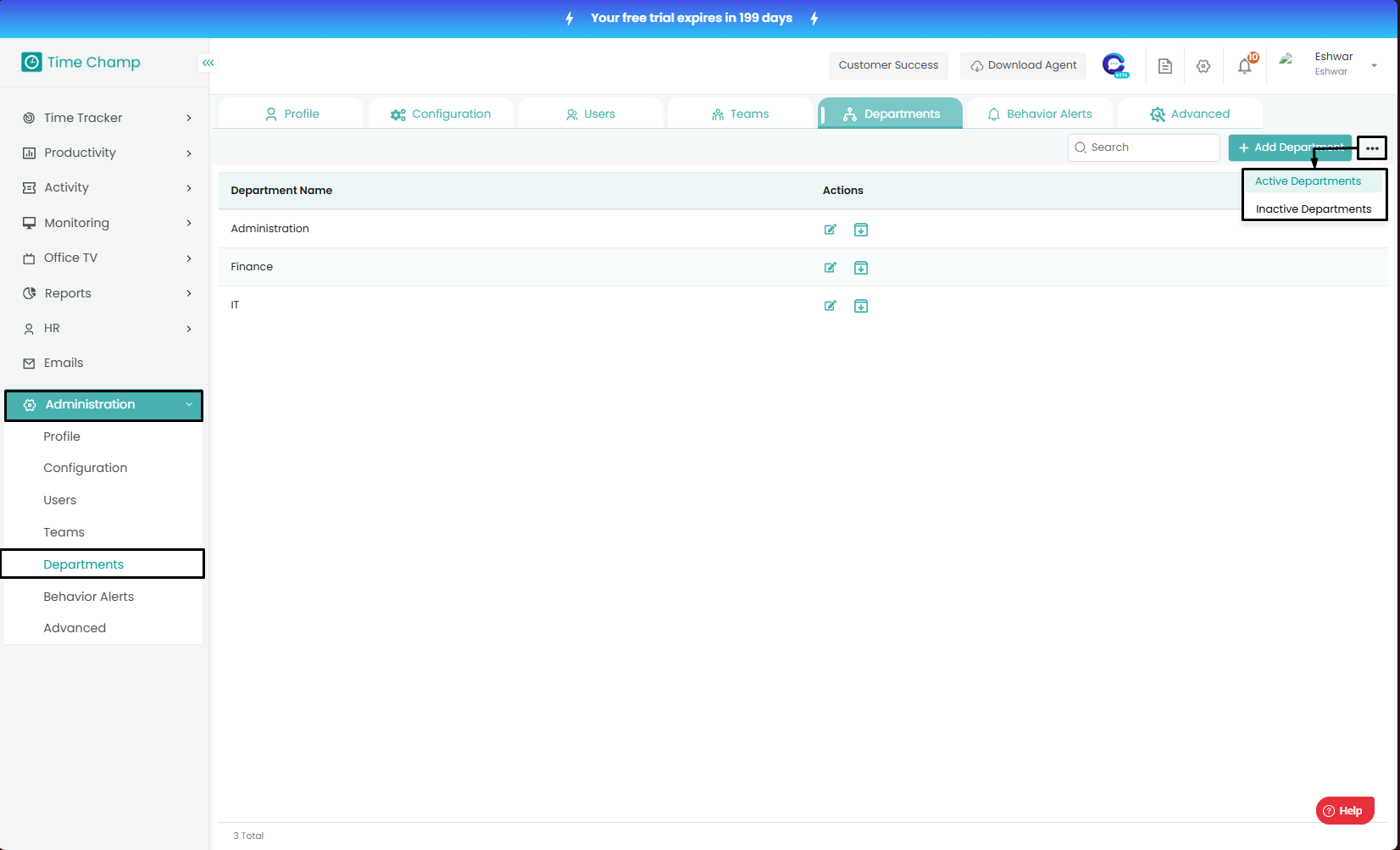 Follow the steps to edit a department. Step 1: Log into the site utilizing your credentials. Step 2: Navigate to the Administration Module and then to the Departments section. Step 3: Now you can view the edit department option in the highlighted ...