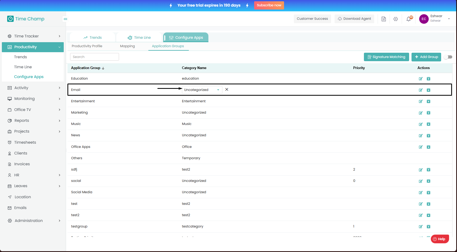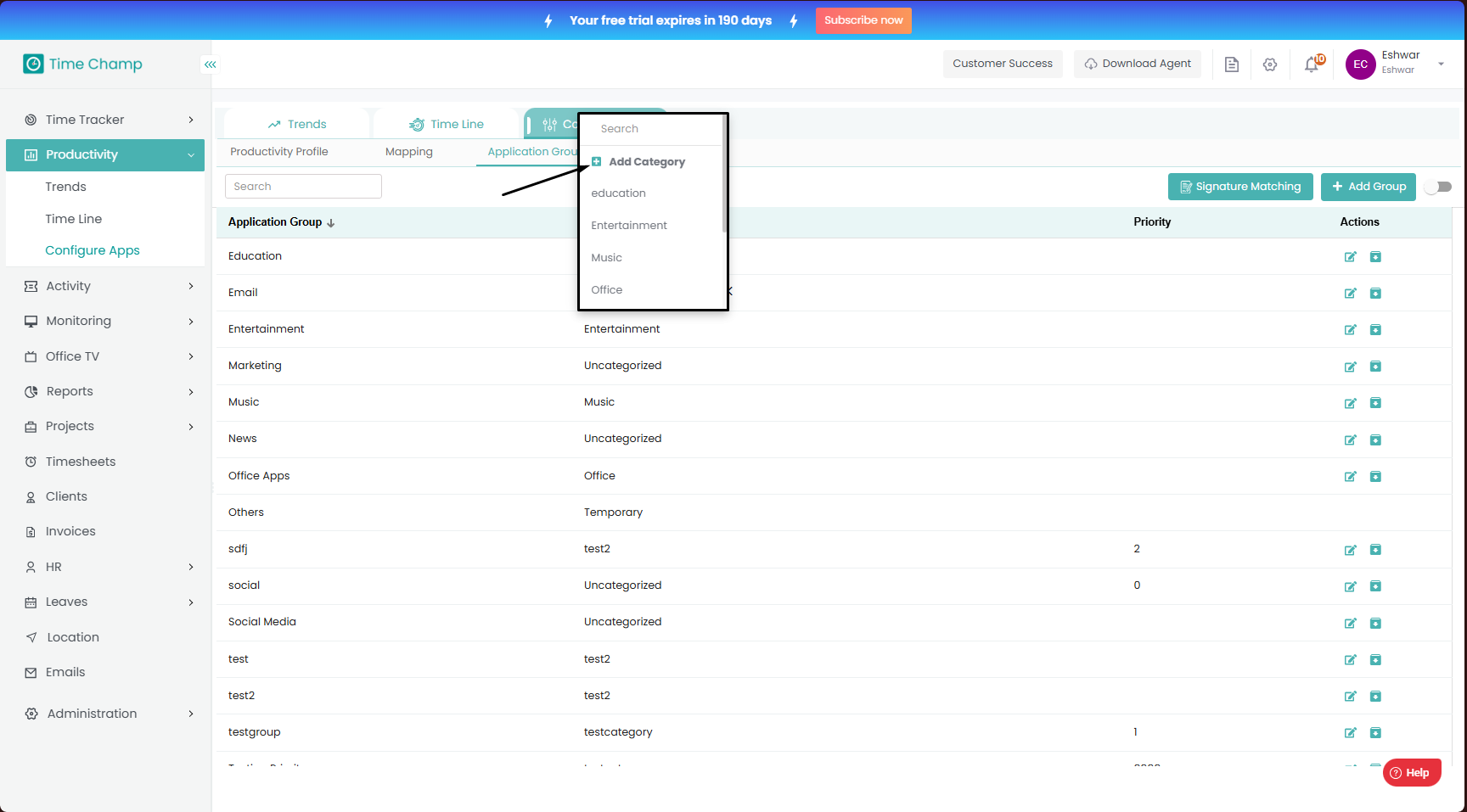 Follow the steps to add a new category. Step 1: Log into the site utilizing your credentials. Step 2: Navigate to the Productivity Module and then to the Configure Apps section. Step 3: Navigate to the Application Groups Sub Section as shown in the ...