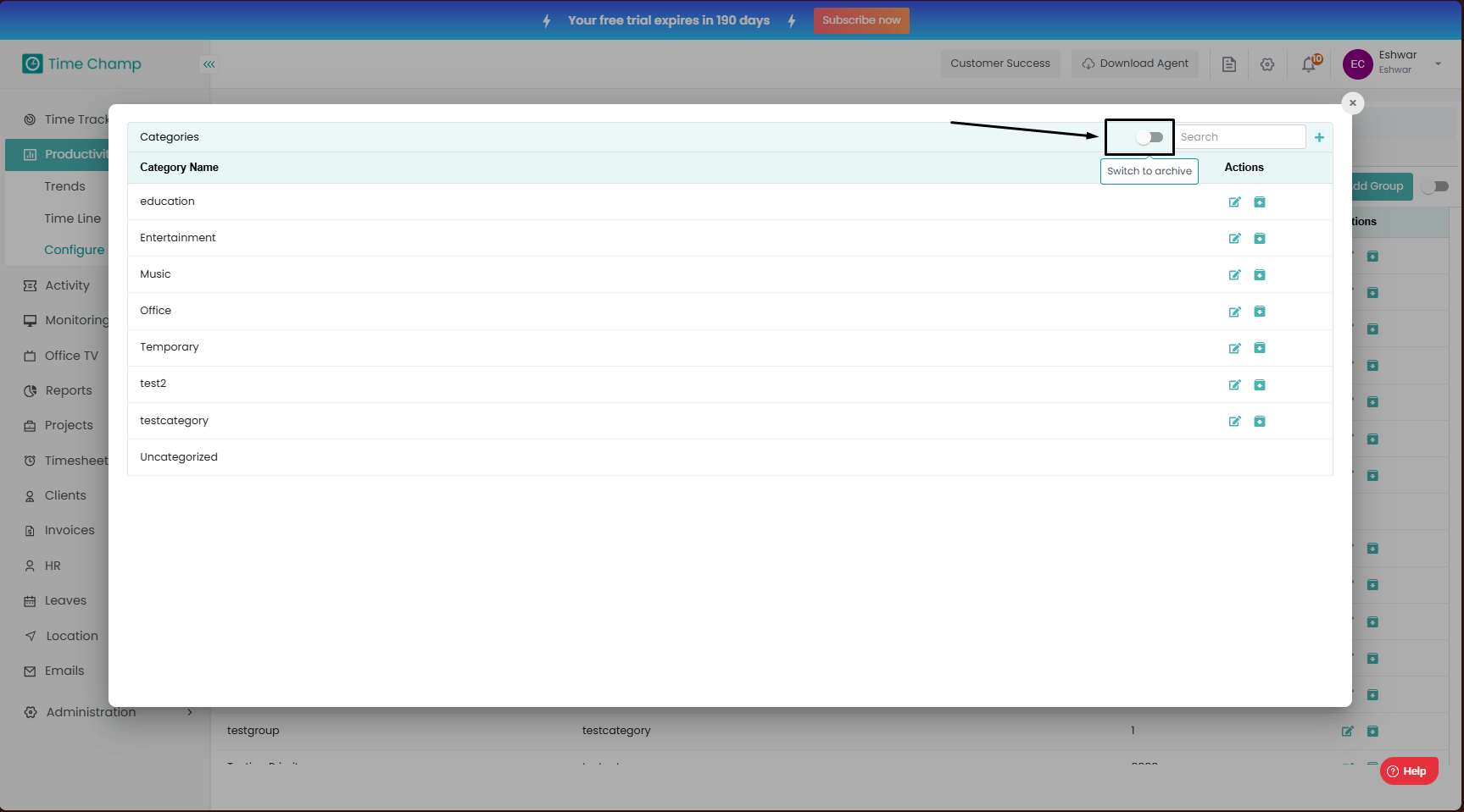 Follow the steps to archive an existing category. Step 1: Log into the site utilizing your credentials. Step 2: Navigate to the Productivity Module and then to the Configure Apps section. Step 3: Navigate to the Application Groups Sub Section as ...