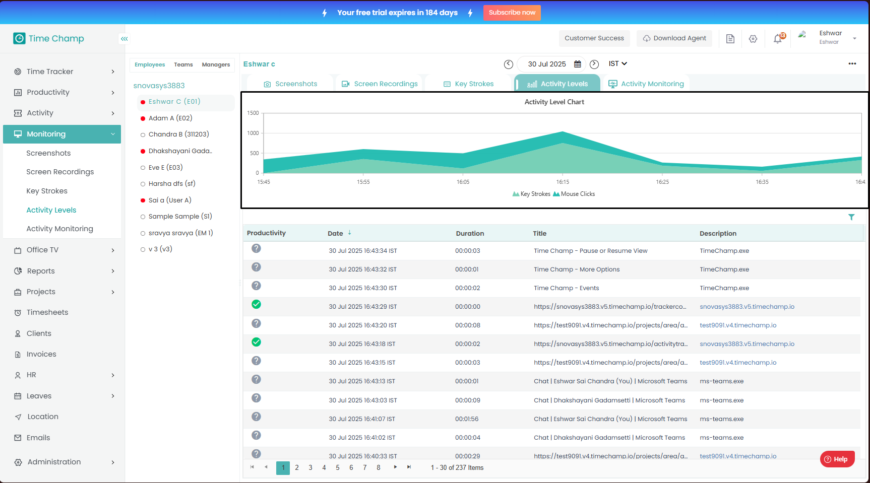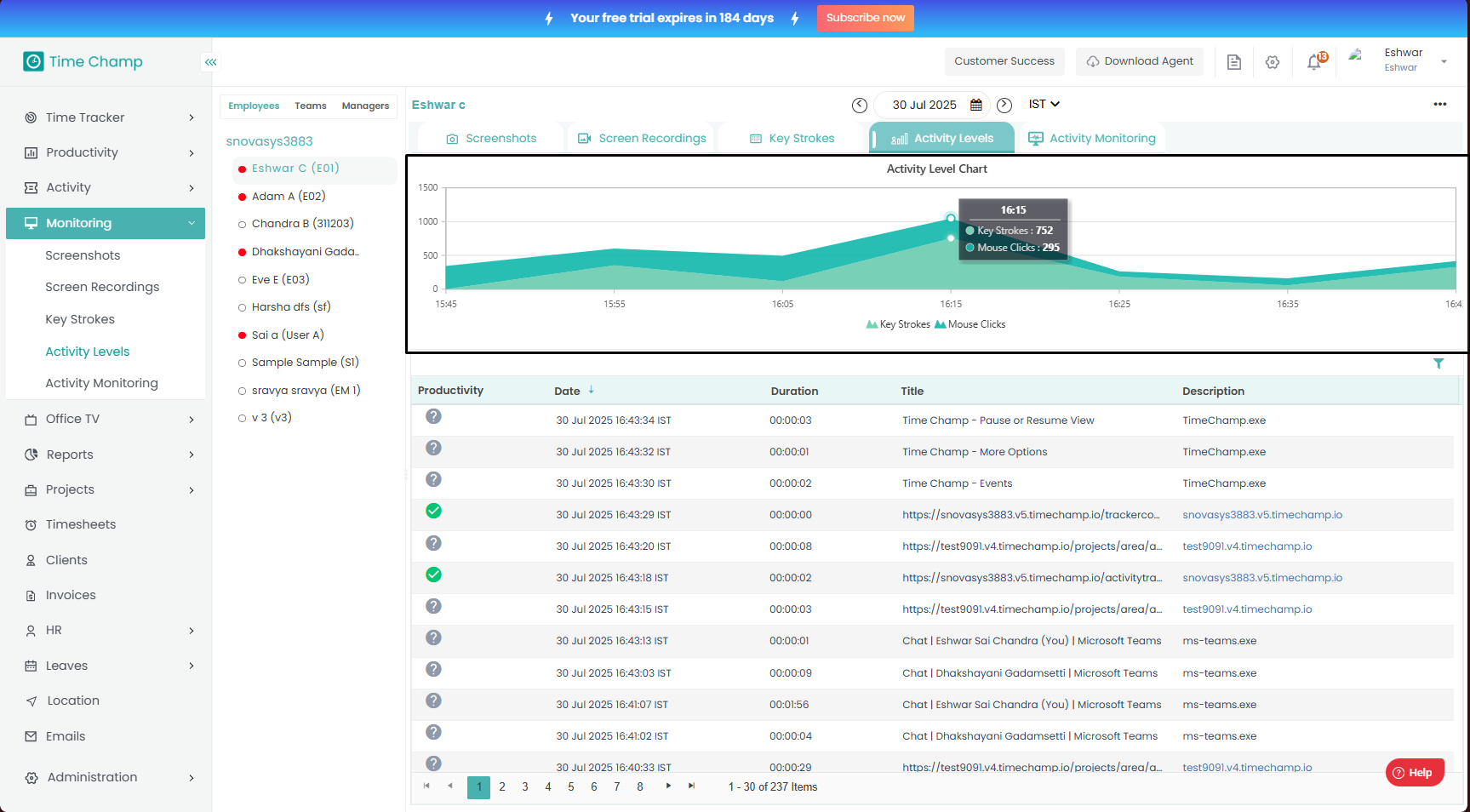 Follow the steps to view Activity Levels of a user in Monitoring Module.