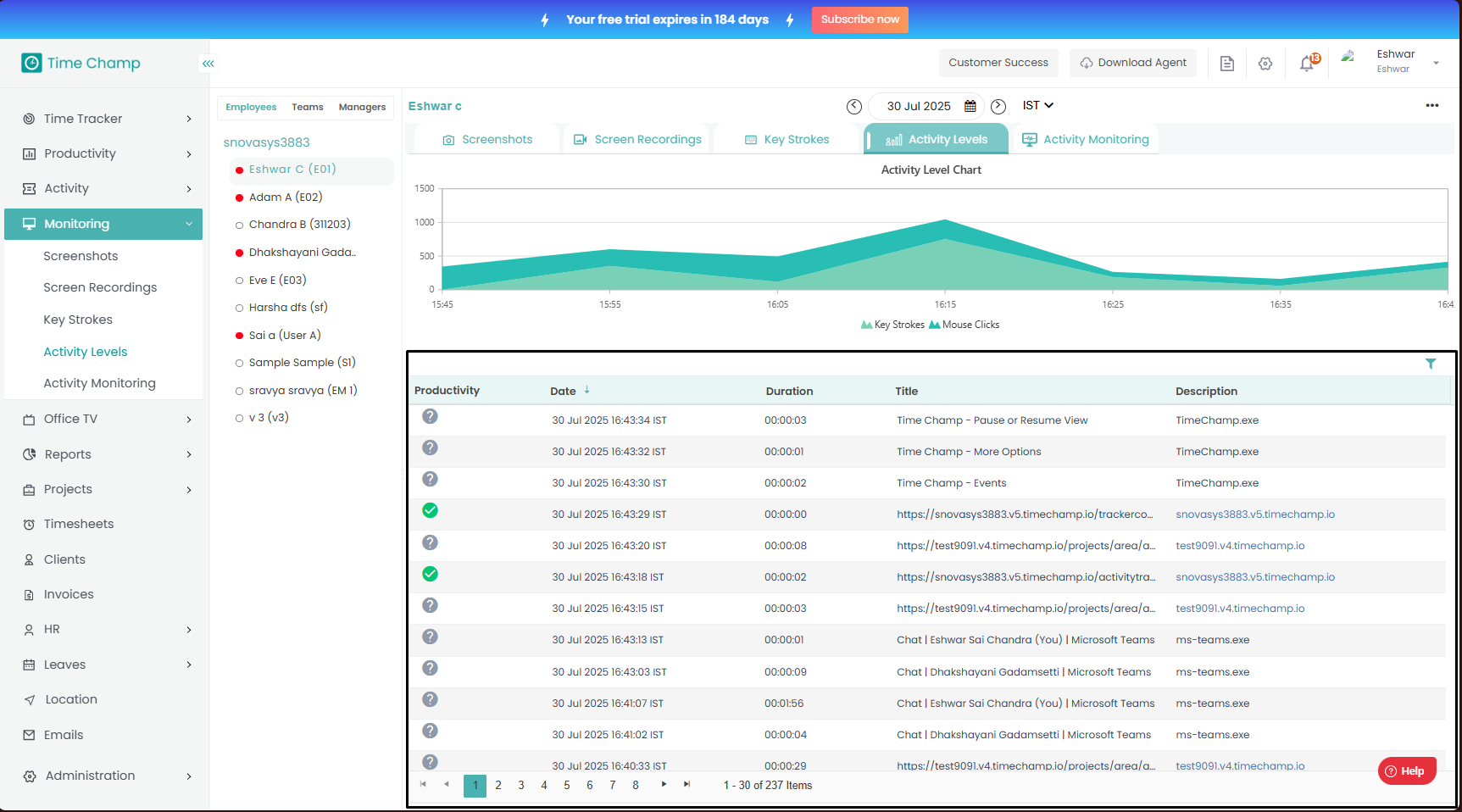Follow the steps to view and download Keystrokes of a user in Monitoring Module. Step 1: Log into the site utilizing your credentials. Step 2: Navigate to the Monitoring Module and then to the Keystrokes section. Step 3: Here you can view the ...