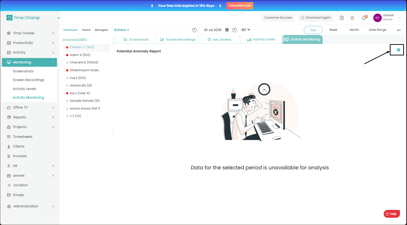 Follow the steps to view Activity Levels of a user in Monitoring Module. Step 1: Log into the site utilizing your credentials. Step 2: Navigate to the Monitoring Module and then to the Activity Levels section. Step 3: Here you can view the Detailed ...