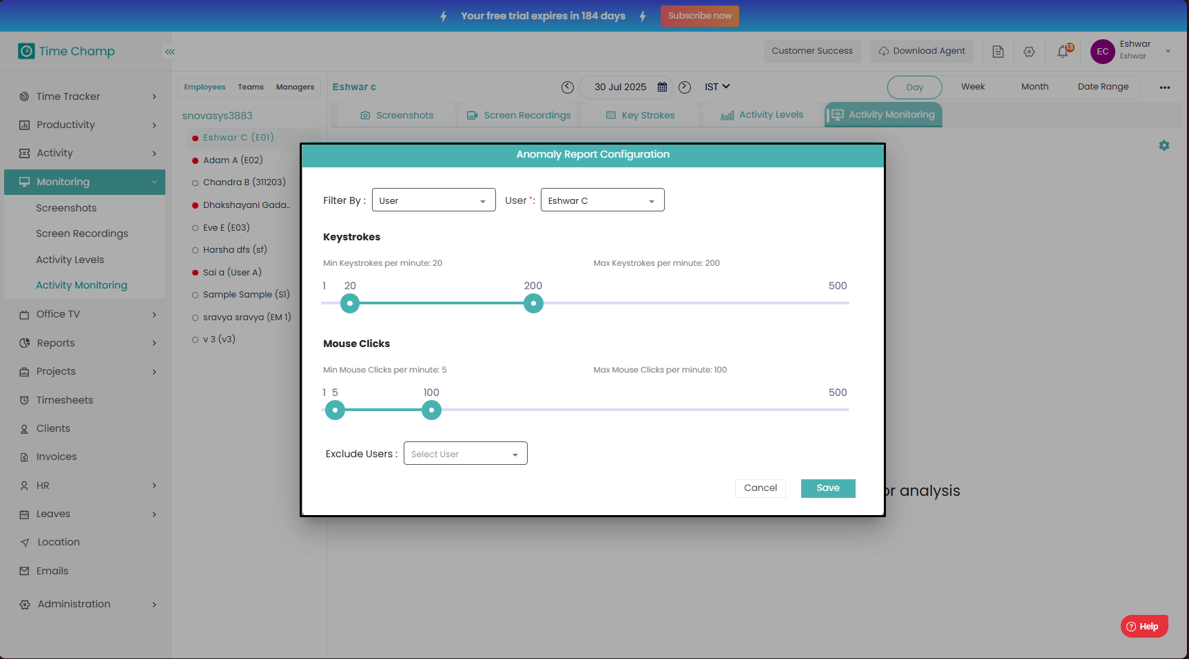 Follow the steps to view and download Keystrokes of a user in Monitoring Module. Step 1: Log into the site utilizing your credentials. Step 2: Navigate to the Monitoring Module and then to the Keystrokes section. Step 3: Here you can view the ...