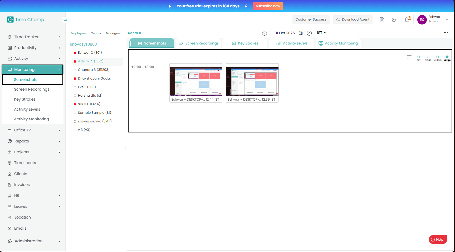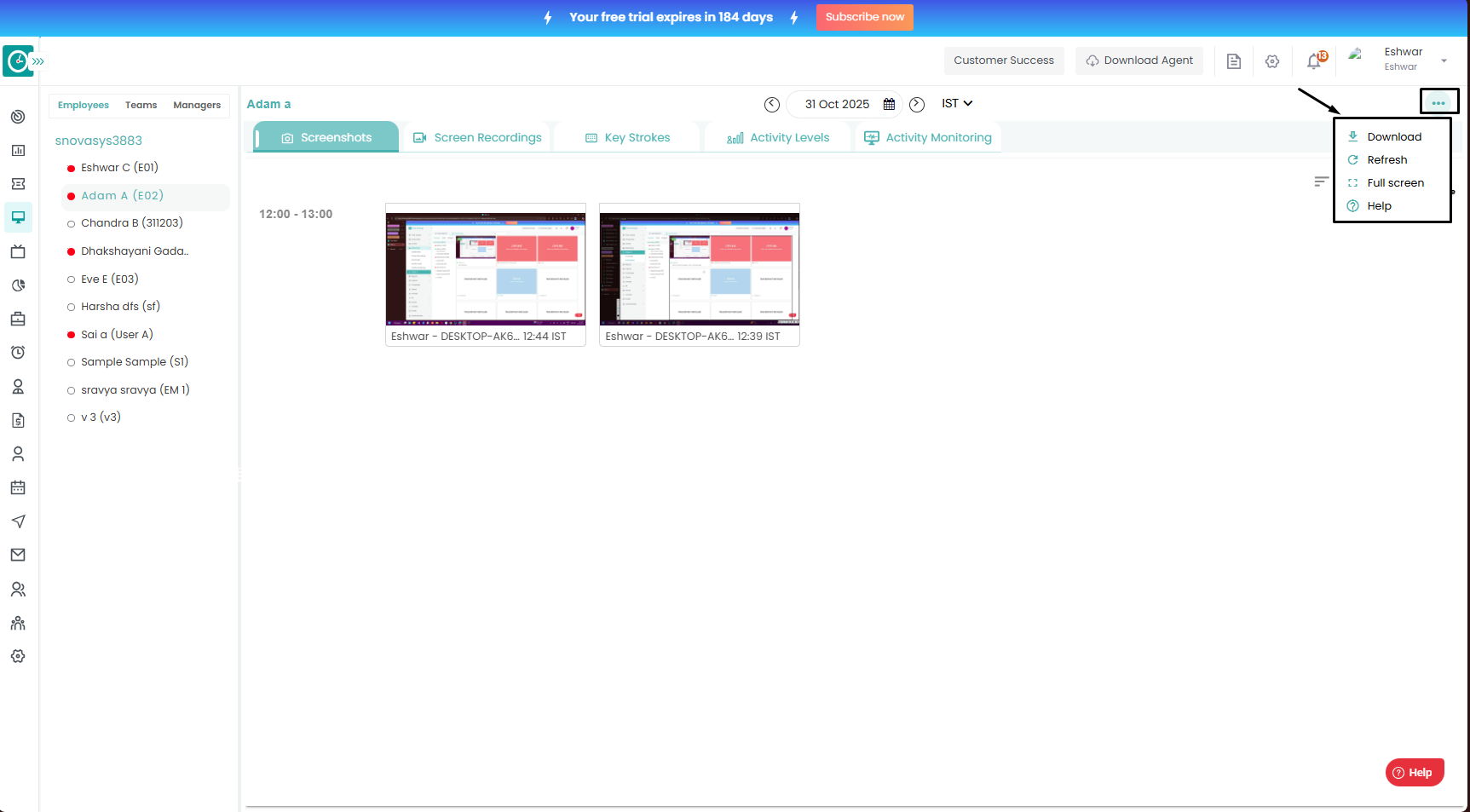 Follow the steps to view Screenshots of a user in Monitoring Module.